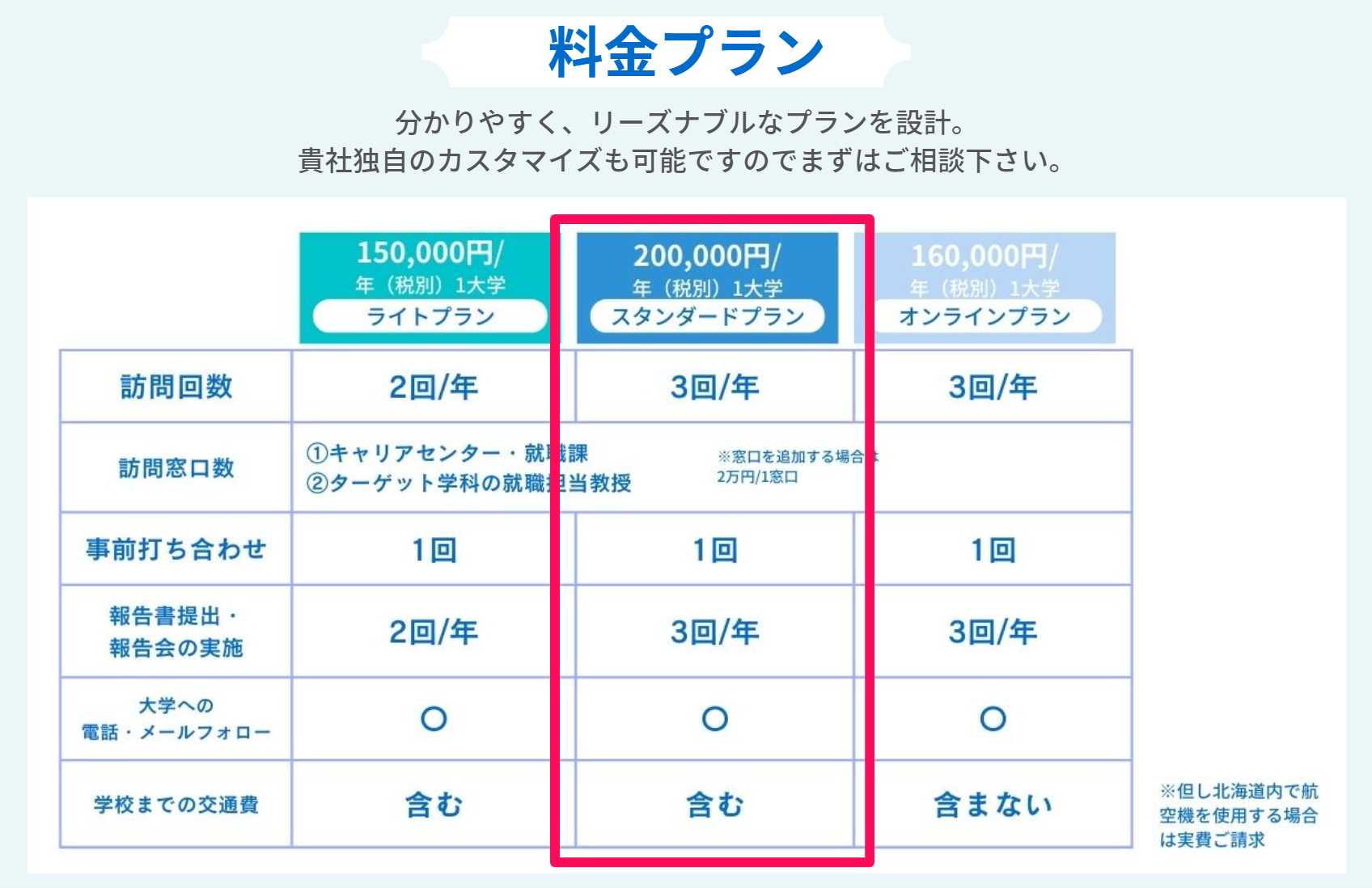 【キャンペーン価格】スタンダードプラン(1大学2窓口2年3回訪問プラン)20万円→10万円