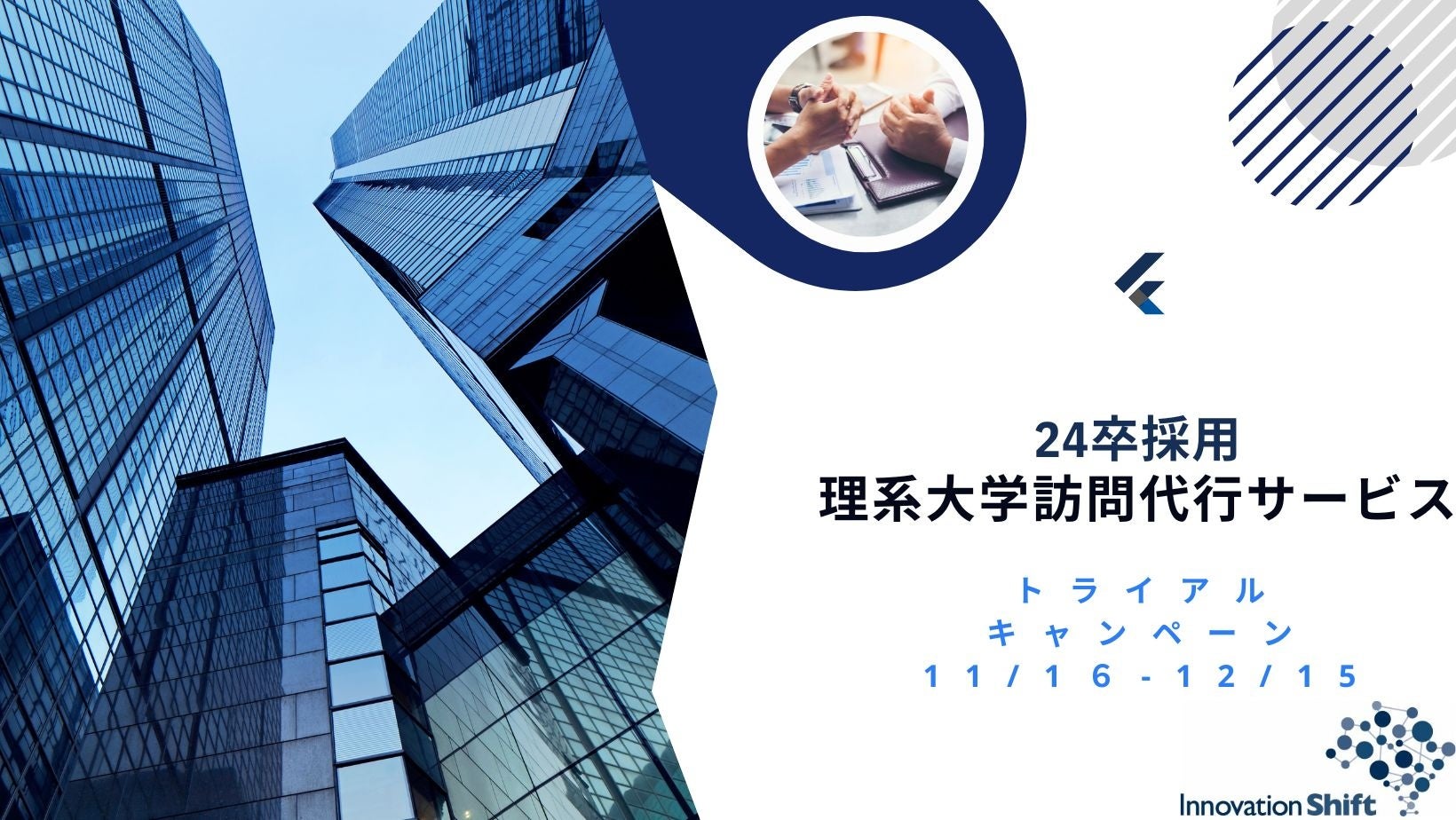 株式会社イノベーションシフト(https://innovation-shift.com/)代表取締役/浪木克文は、24卒新卒採用における理系大学訪問代行サービス 「スタンダードプラン」のトライアルキャンペーンを実施することになりましたのでご案内させて頂きます。