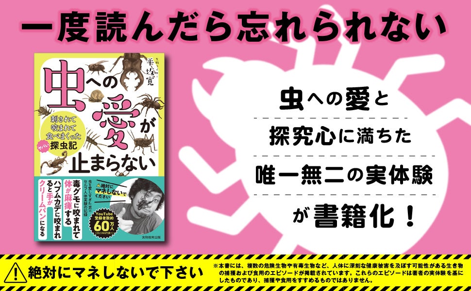 大人気生物ライター平坂寛氏著書「虫への愛が止まらない 刺されて咬まれて食べまくったヤバい探虫記」9月26日発売