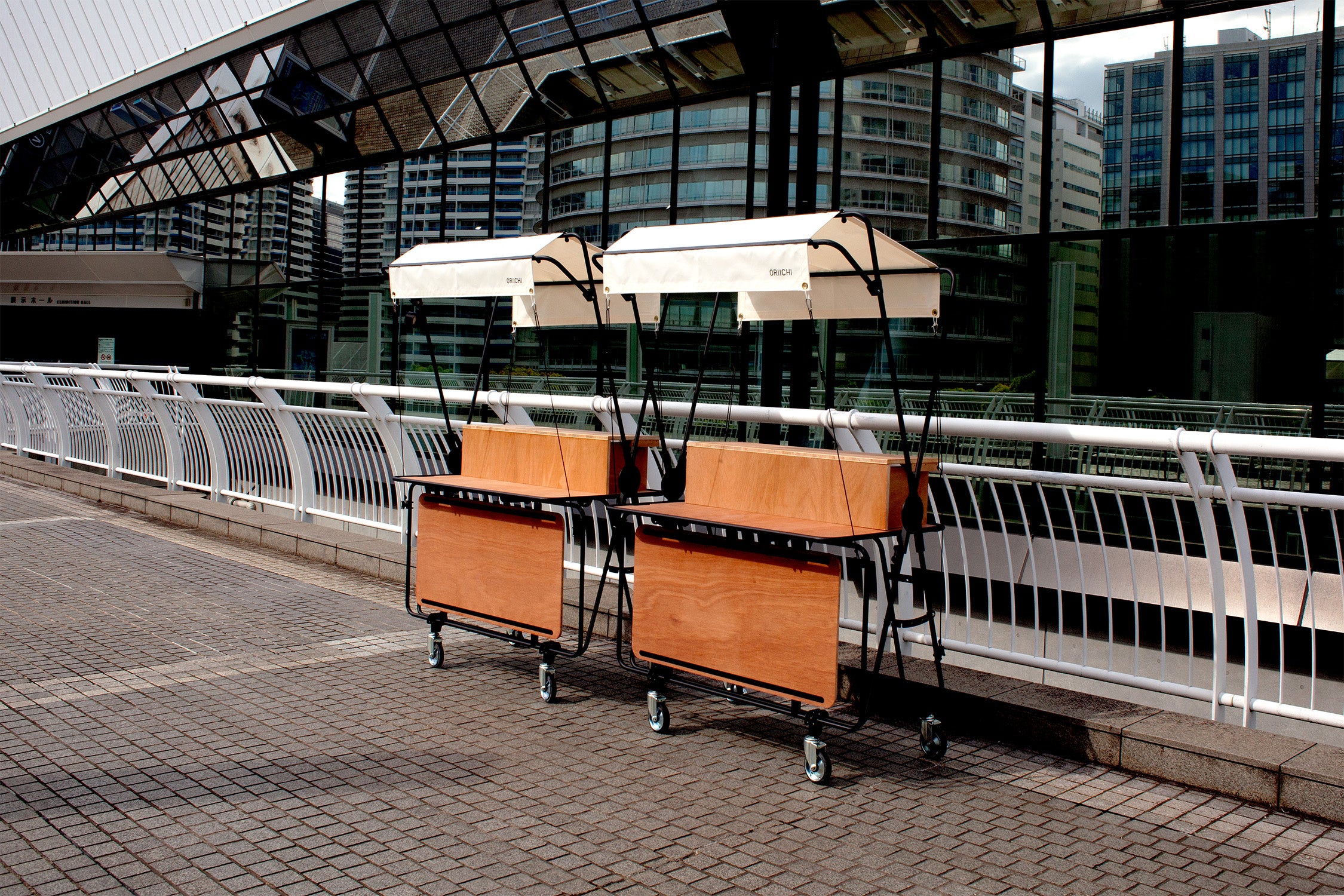 ORIICHIは折畳式のマルシェ用ファニチャーで、街に新たな賑を創造する装置としてデザインしました。