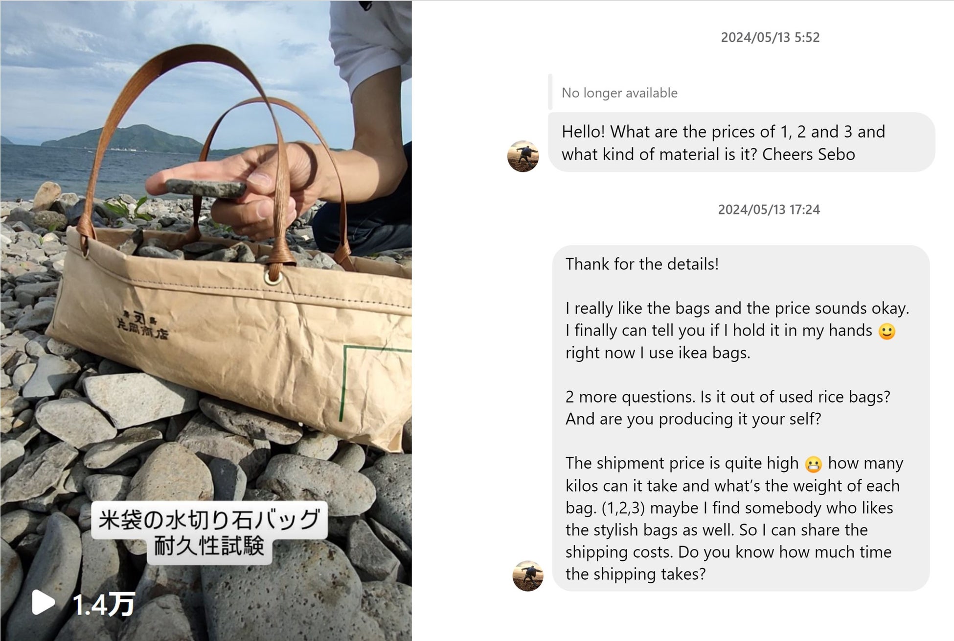 そういった自然環境との調和を大事にする国の方から「米袋の水切り石バッグ」を評価頂き、大変うれしく思います。