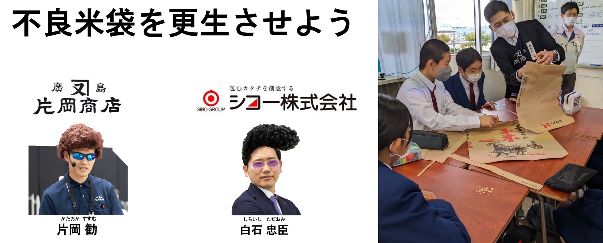 株式会社片岡商店は1897年創業のスクールバッグメーカーですが、2023年より米袋メーカー、シコー株式会社(所在地:大阪府大阪市、代表:白石忠臣)と協力して「印刷ロスで破棄される米袋をバッグにSDGs更生する授業」を広島市立楠那中学校で実施しております。[ 詳細 ]