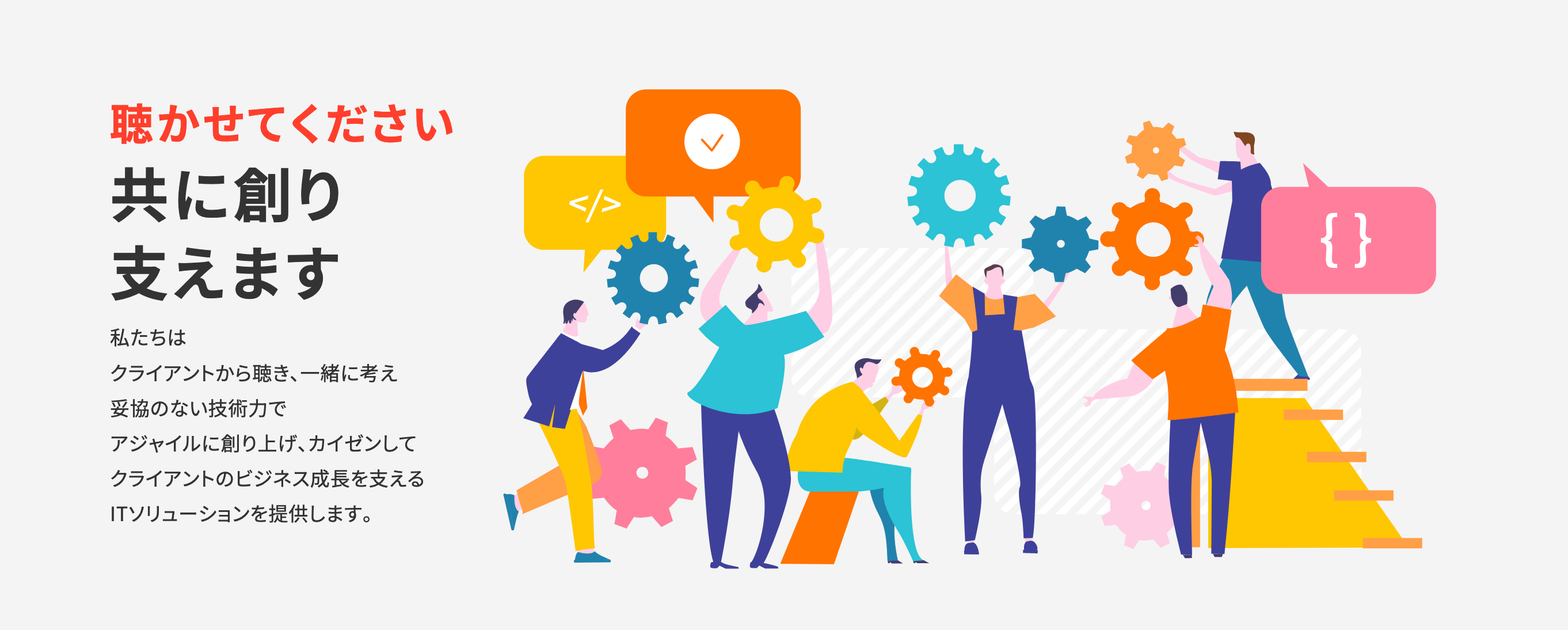 2008年創業。クライアントから「聴き」「共に創り支える」ことをモットーに、今と将来のクライアントのビジネスにとって必要なものが何かを一緒に考え、しっかりとした技術力で、創り上げ、カイゼンし、クライアントのビジネスの成長を支えるITソリューションを提供することに注力しています。現在、東京とNew Yorkの2拠点にオフィスを構え、世界各地のエンジニアやデザイナーが結集してリモートチームとして働いています。2020年に創業50年を迎えた、総合IT企業・株式会社ジャパンテクニカルソフトウエア(JTS)のグループ会社です。