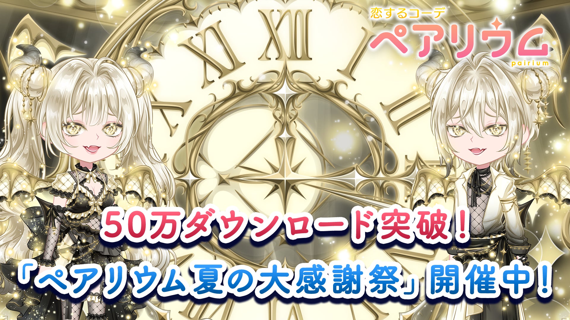 2021年にサービスを開始した『ペアリウム』が、多くのユーザーの皆さまに支えられ、ついに50万ダウンロードを達成しました。これを記念したイベント「50万DL記念!ペアリウム夏の大感謝祭!」を開催しております。