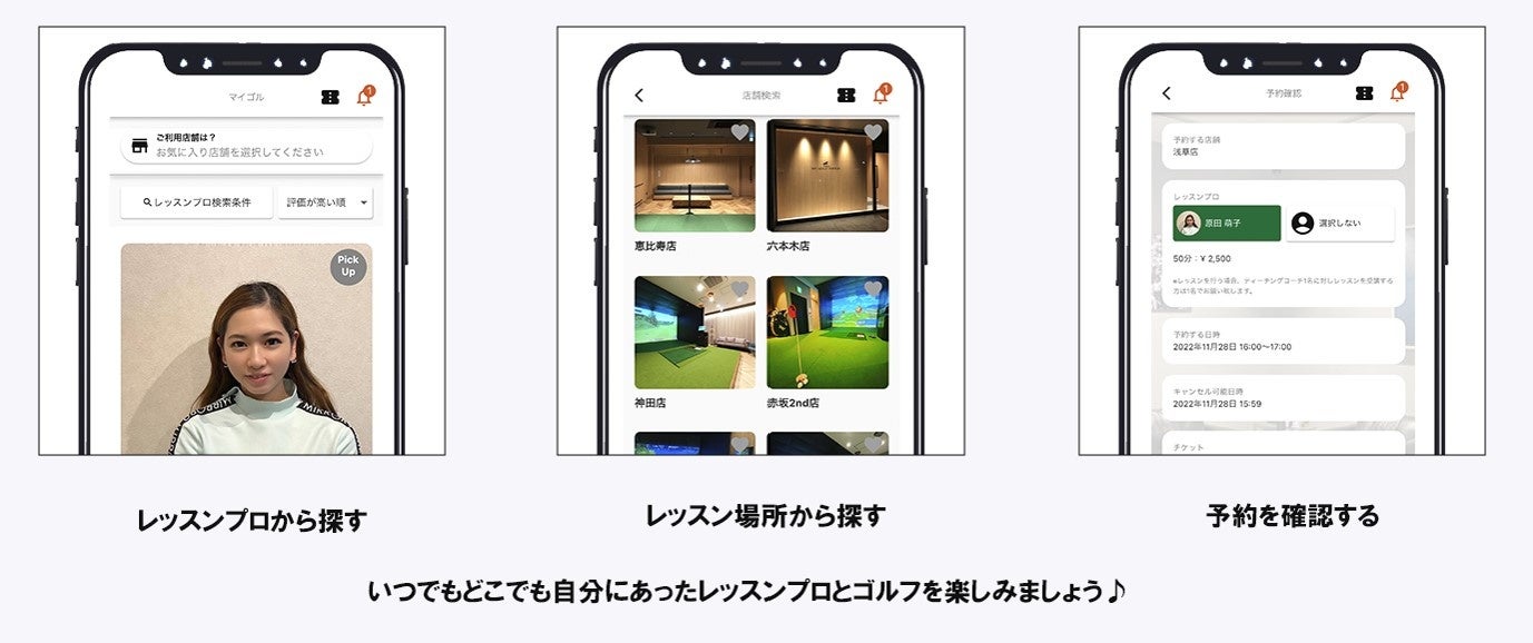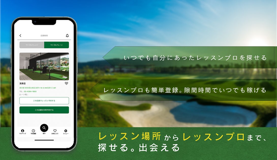 【レッスンプロをいつでも探せる】レッスン場所からレッスンプロまで、探せる。出会える。予約もできる「マイゴル」アプリがリリース!