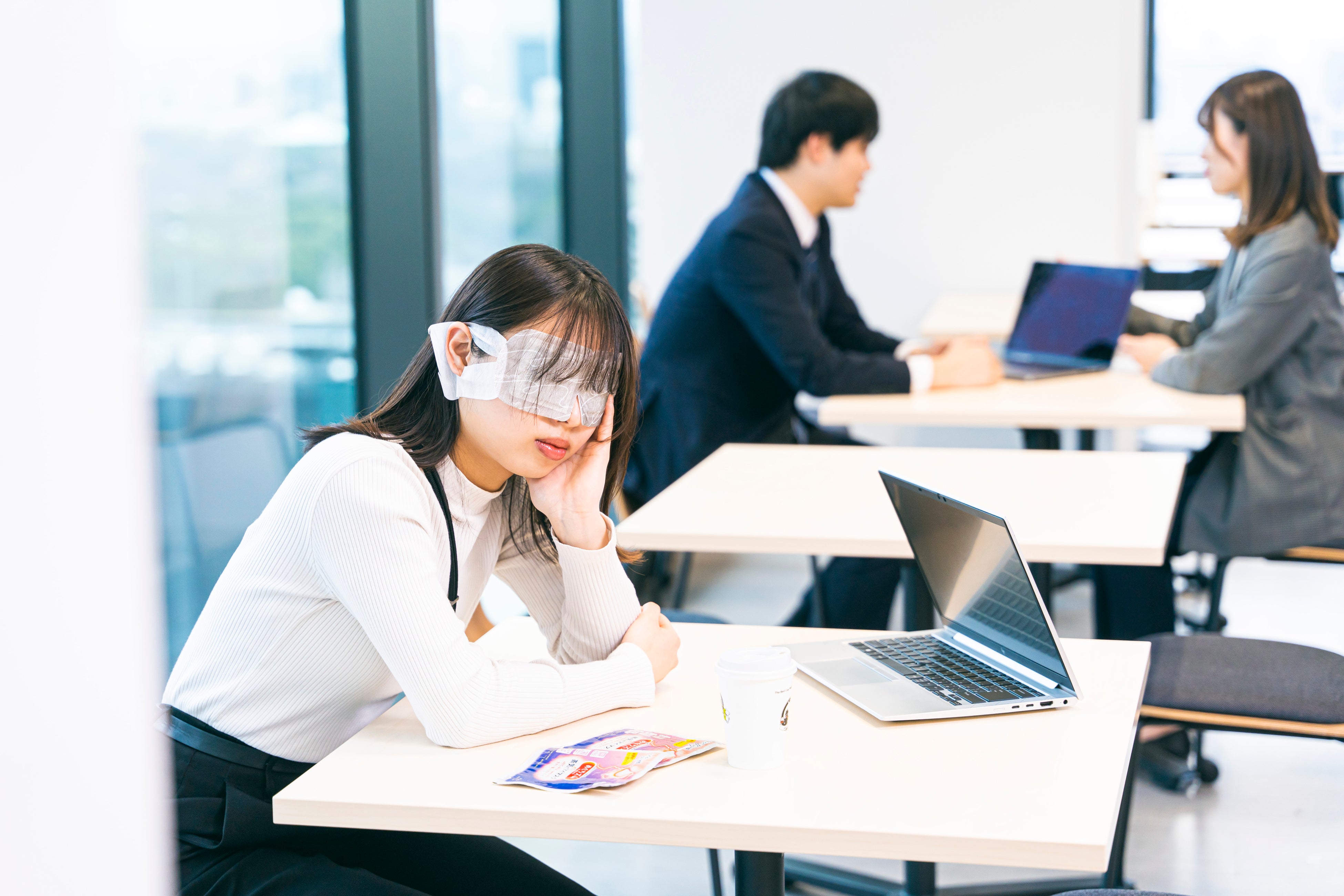 心地よい蒸気が働き続けた目と目もとを温かく包み込み、気分リラックスするアイマスク。
