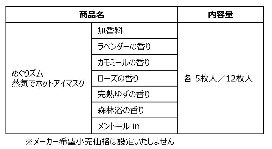 | 【活動概要】 ・本活動の主旨に賛同し、「オフィスめぐりズム」キット(「蒸気でホットアイマスク」と専用BOX)の設置を希望される企業様を募集いたします。 ※「蒸気でホットアイマスク」については、企業様のご負担となります。 ・詳細は、下記お問い合わせ窓口より、お問い合わせください。 |