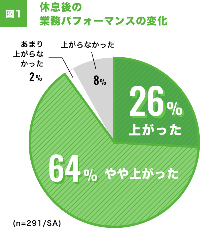 先行トライアル企業様にアンケートを実施した結果、休息体験者の90%(※)の方が、業務パフォーマンスの向上を実感(図1)したことが分かりました。