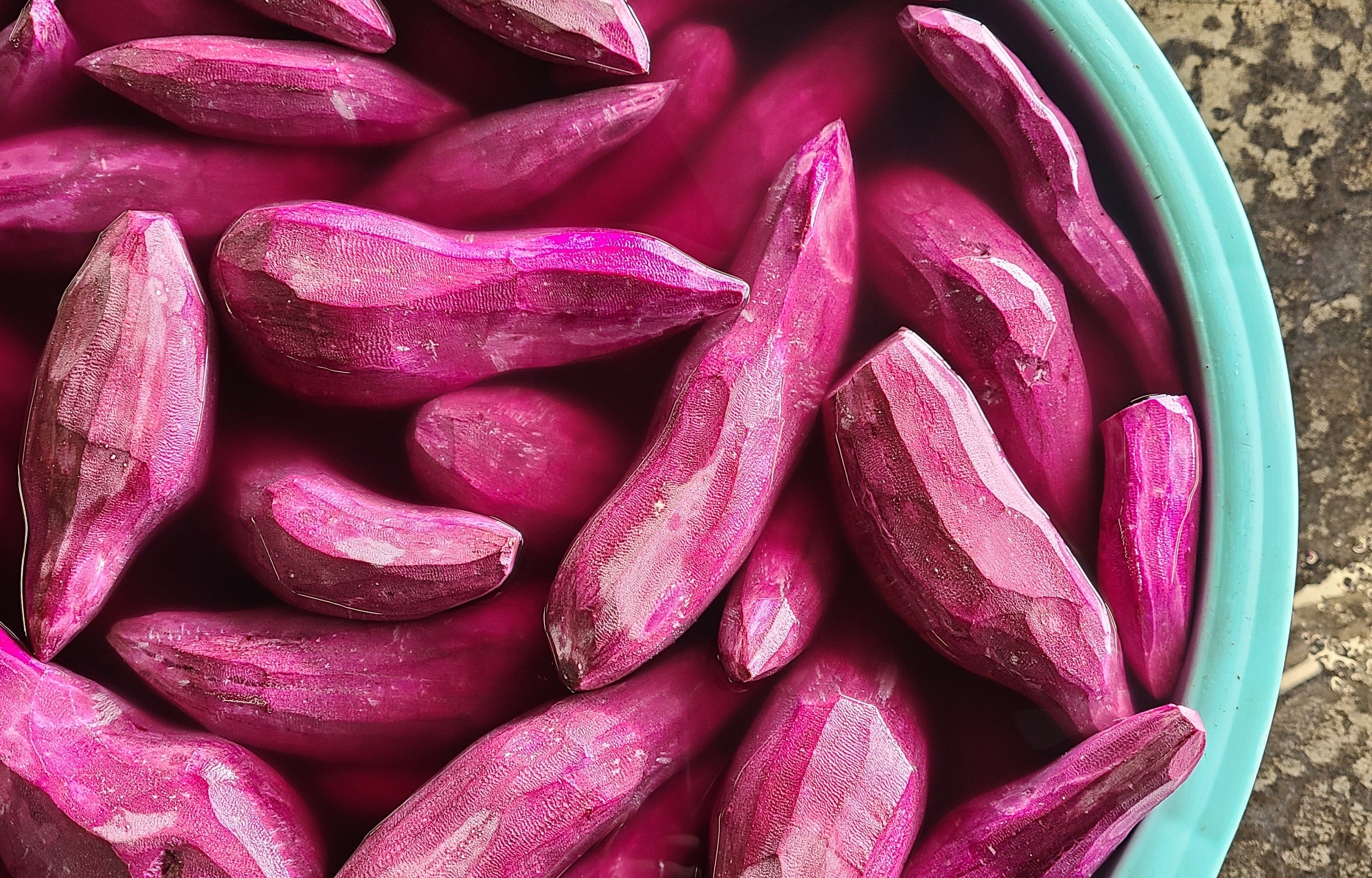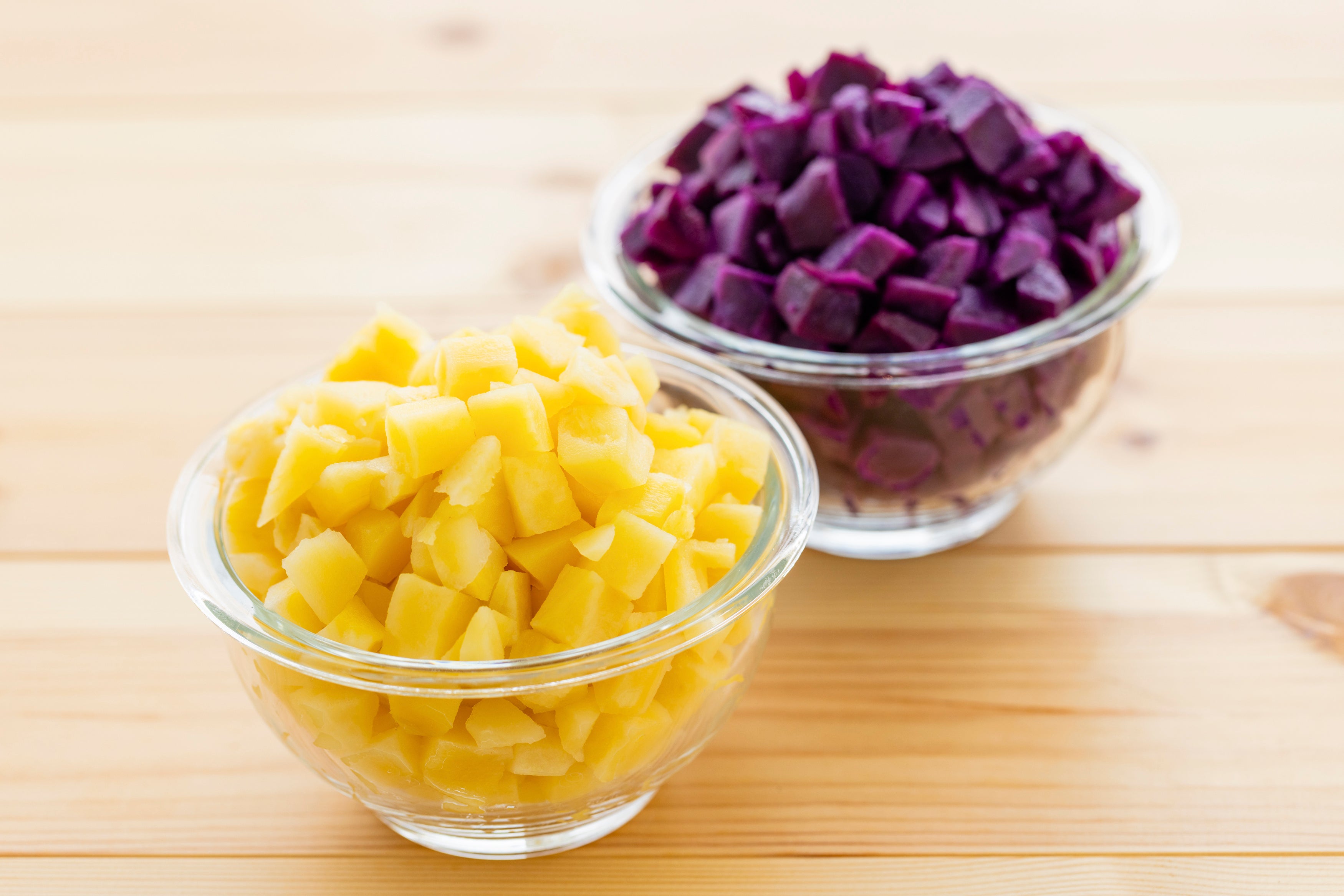 キューブに使用しているムラサキマサリは発色の美しい紫芋。