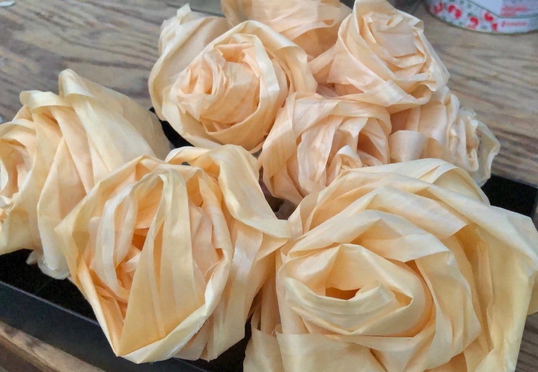 木の香りで癒される「かんなくずのブーケ」は、かんなくずを使って3~5輪ほどのお花を作り、包装紙とリボンで包みます。