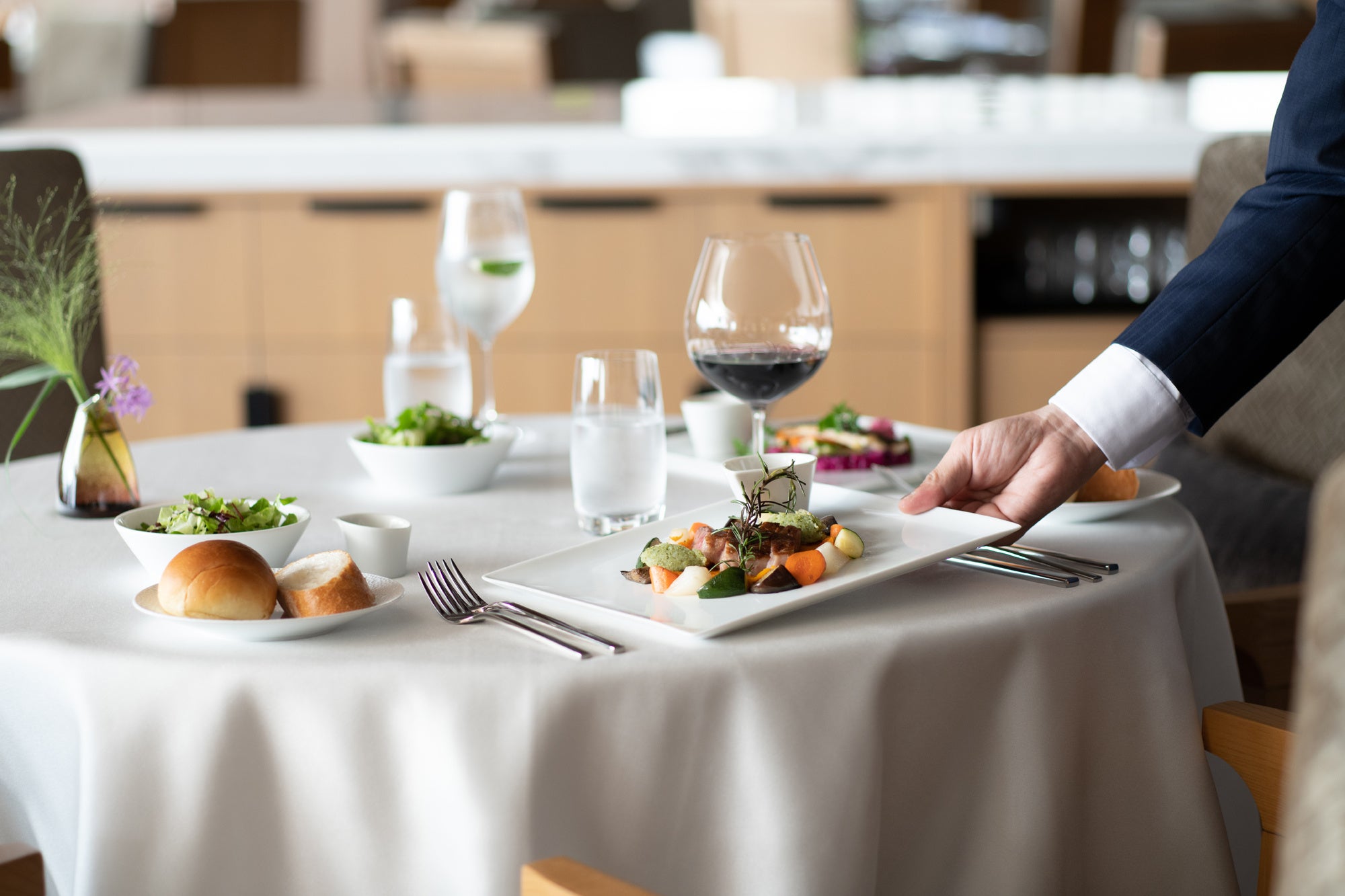 ご宿泊には欠かせないブレックファストは和洋中のブッフェスタイルで。またはインルームダイニングでもお楽しみいただけます。インルームダイニングでは、ディナーのご用意もございます。