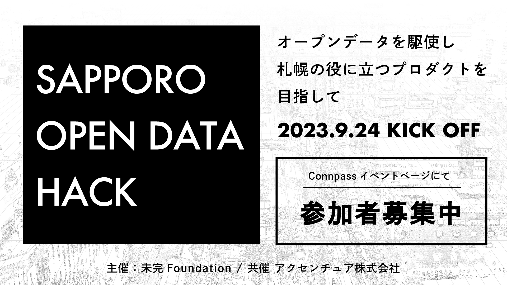 札幌市の自治体課題をオープンデータで解決する2DAYSのメンタリング付ハッカソンを11月18日・19日の2日間で開催します。 世界最大規模の総合コンサルティング企業アクセンチュアの社員がメンターとして参加し、技術・アイデアの両面からサポートします。9月24に開催予定のキックオフイベントにて、チームアップ・メンターとのマッチングを行い、キックオフ後はハッカソン運営チームが技術・アイデア創出のためのオンライン講習を開催(回数・時間未定)。アプリケーションやプロダクト開発に必要なアイデア・考え方・技術をサポートします。