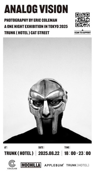 Mochillaが主催し、日本では初開催となる今回のEric Colemanのソロ写真展『ANALOG VISION: PHOTOGRAPHY BY ERIC COLEMAN / A ONE NIGHT EXHIBITION IN TOKYO 2025』では、サザビーズにも出品されたMF Doomのポートレイト作品の同サイズの別エディションを始め、MadvillainやJ Dillaなどヒップホップの歴史を語る上で非常に重要かつ貴重な作品が多数展示されます。なお、現在のところ写真作品の展示を予定しているアーティストは以下の通りです。