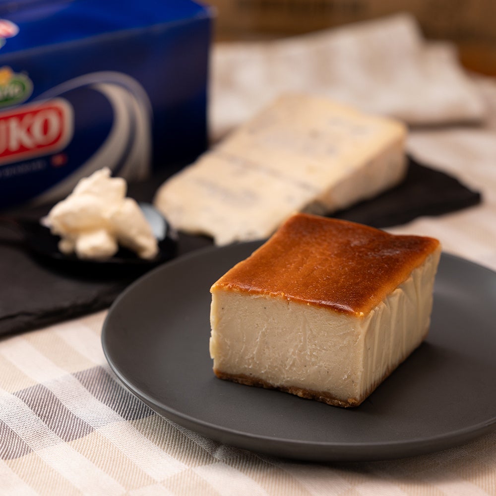 パスタやピザにも使用されるイタリアのブルーチーズ「ゴルゴンゾーラピカンテ」と、酪農王国デンマーク産の「BUKOクリームチーズ」をふんだんに使ったこのチーズケーキ「- 碧(あお)-」は、チーズ専門店による“チーズ好きな方の為の”チーズケーキです。一般的なベイクドチーズケーキよりもチーズの存在感を感じるのは、フェルミエのナチュラルチーズを贅沢に使用しているからです。