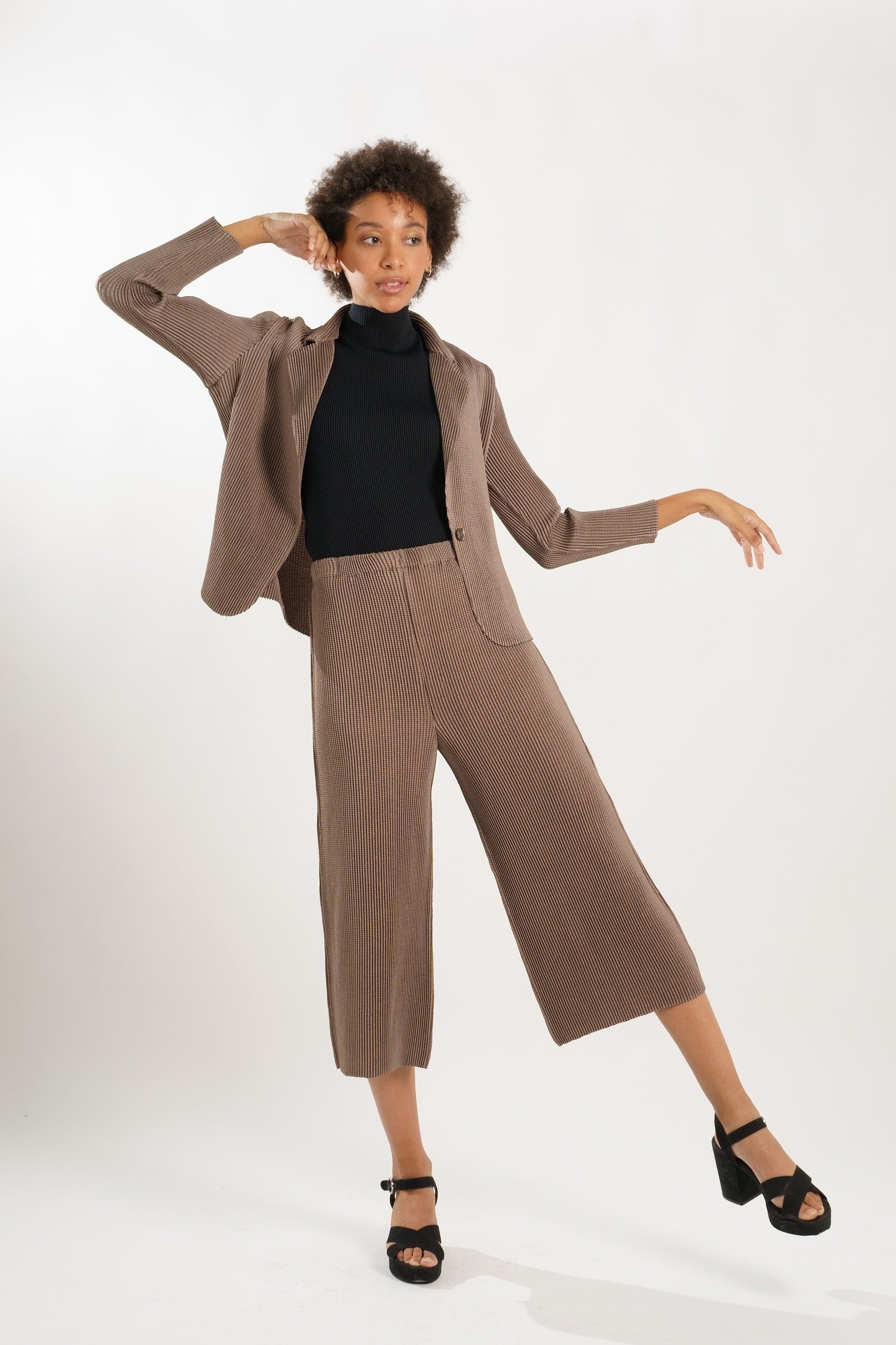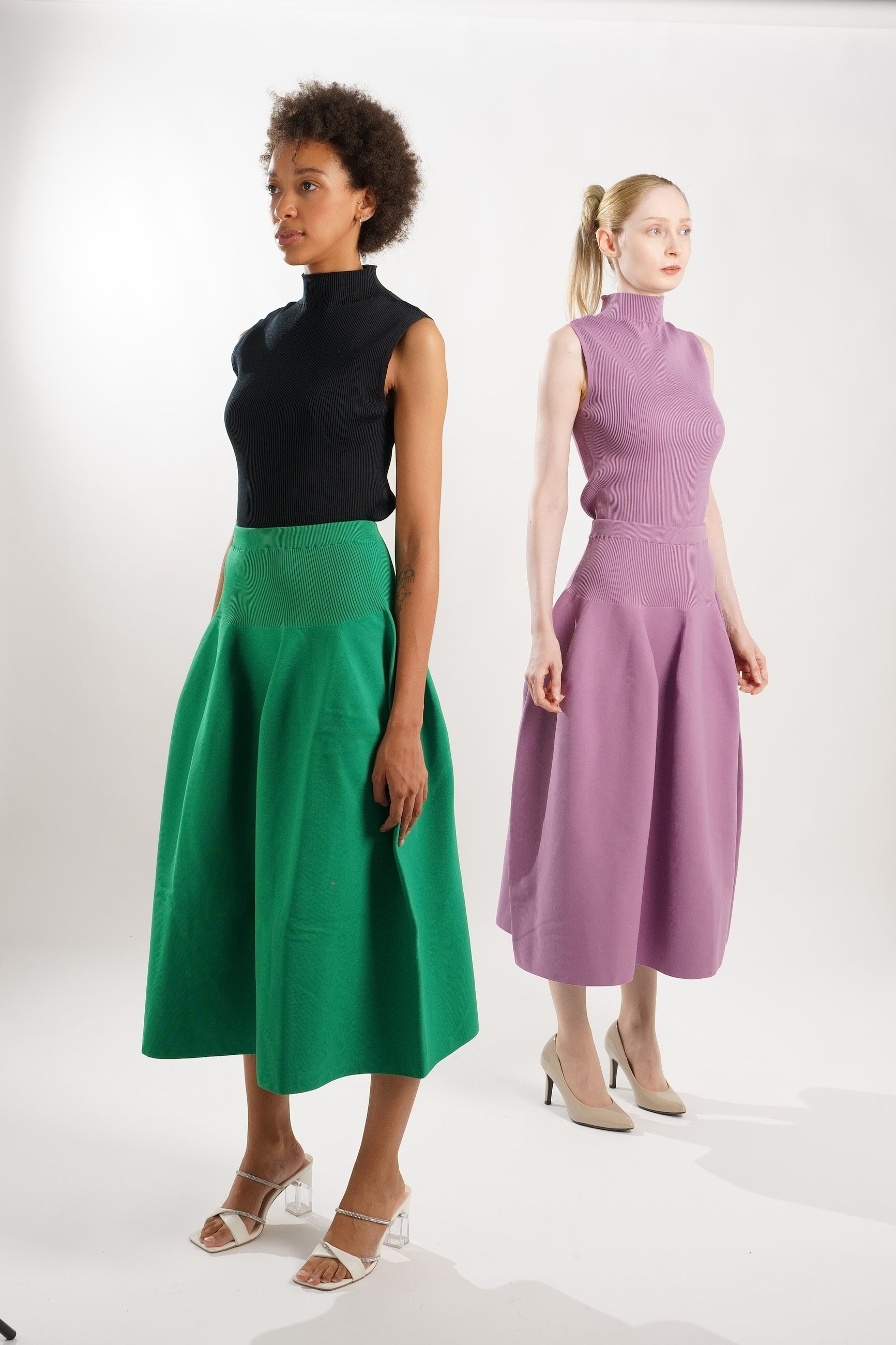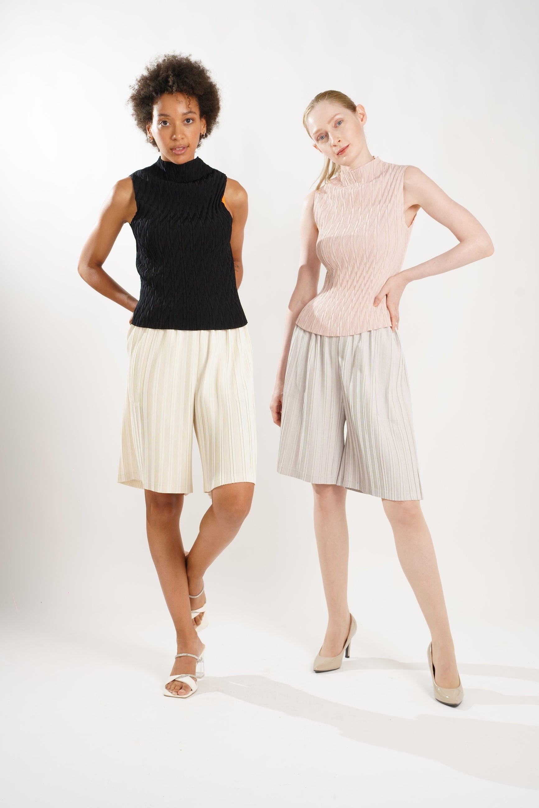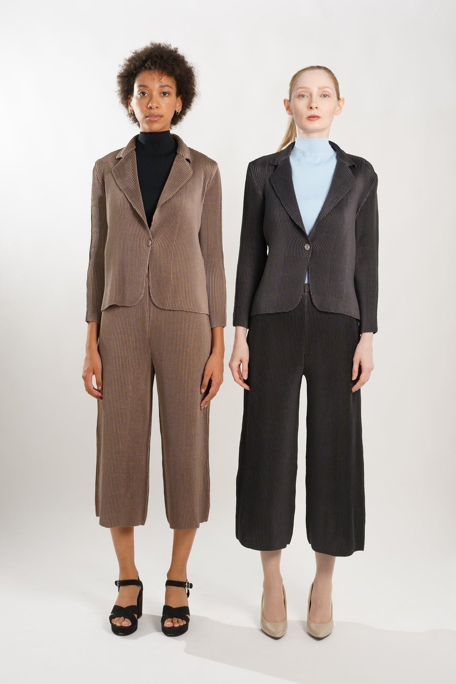 メイドインジャパンクオリティの製品で、ホールガーメントやプリーツを中心に仕事や日々の生活にフィットしながらも、レストランのドレスアップまで対応可能な多様さを持つスタイルであること。ストレッチ性があり様々な体型にフィットするシームレスな着心地のよさを常にアップデートしつづけています。