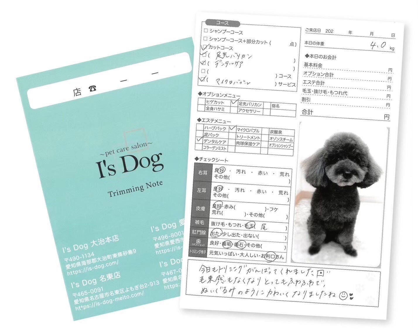また、トリミング後には施術内容や健康状態を記録した
