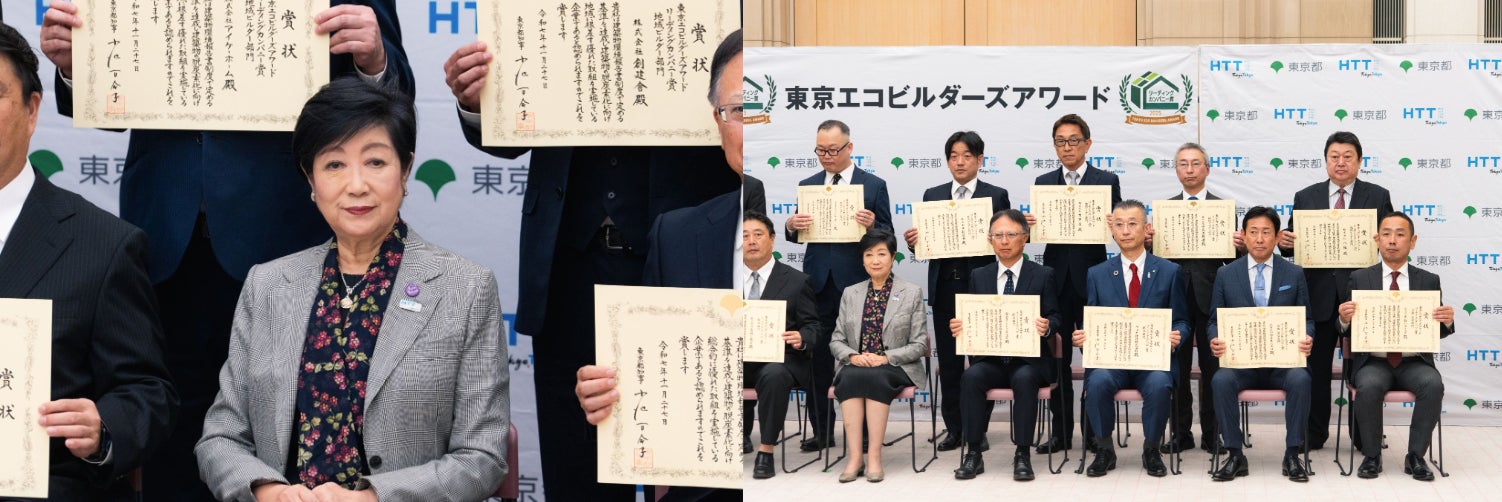 高性能注文住宅 工務店の八幡「令和7年度 東京エコビルダーズアワード」にて3年連続 3賞5部門すべてで最高評価を獲得。東京都庁で行われた表彰式にて小池百合子氏・須藤栄氏より表彰状とトロフィーを授与。
