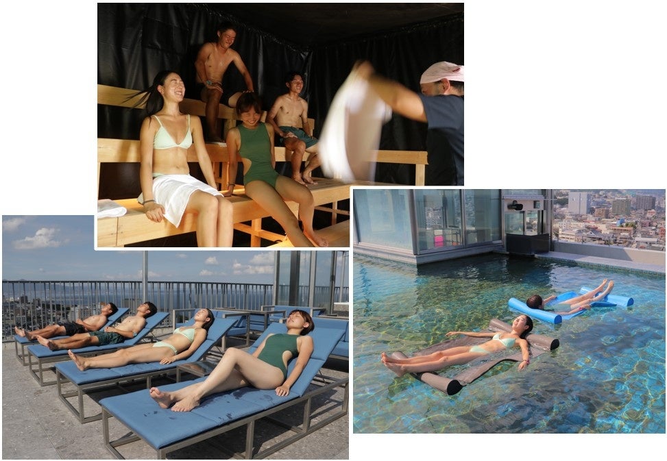 アマネク別府ゆらりは、「地域活性化」をテーマとした新しいコンセプトのもと2021年12月に開業しました。旅の解放感を存分に味わっていただける館内施設として、別府湾と雄大な風景に包まれる「温泉インフィニティプール」や展望温泉大浴場と共に日本最大級※のテントサウナもご家族、ご友人、カップルの方々などに水着着用で一緒に楽しめるサウナとして開業以来お楽しみいただいておりましたが、この度テントサウナを大幅にリニューアルしました。全体監修をサウナのスペシャリストであるテルマリウム株式会社に依頼し、屋外設置テントサウナの弱点であった強風対策をさらに万全に施した上で密封性を高め、熱効率をなどを重視したドイツ製大型ストーブEOS Goliathを導入しました。