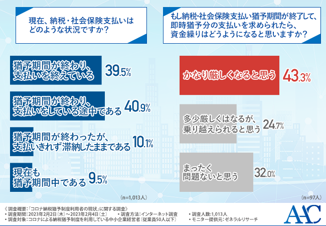 税金・社会保険の支払い猶予期間終了後も5割の企業が未だ支払いを終えておらず