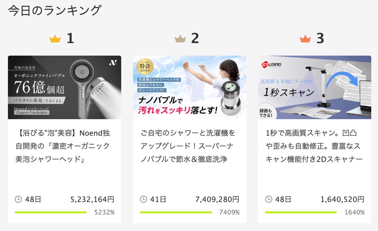 - Makuakeランキング1位獲得|初日で達成率4,471%