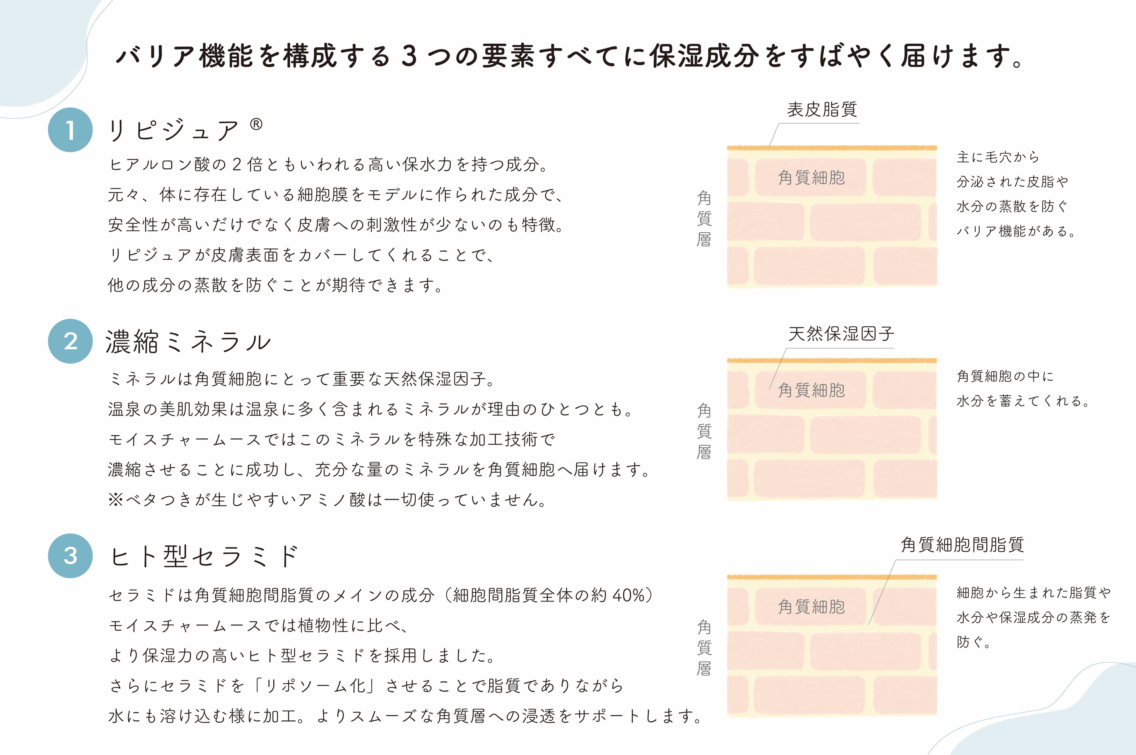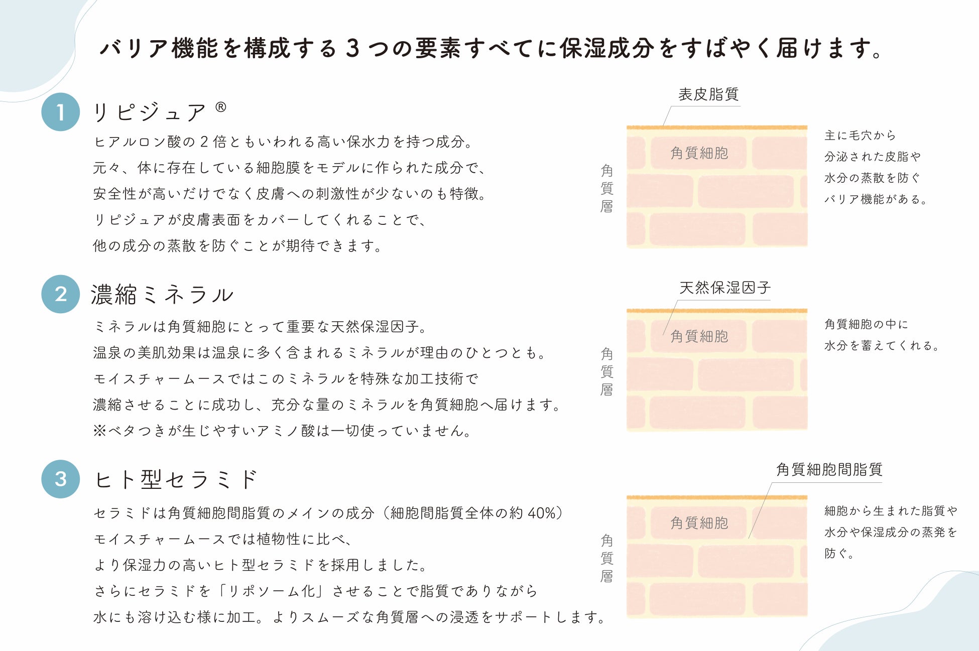 以下3つの保湿成分が皮膚のバリア機能を構成します。