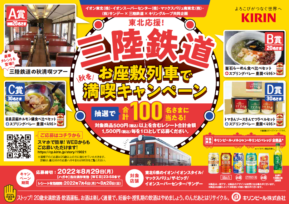 キリンビール×東北イオングループ×三陸鉄道「三陸鉄道 お座敷列車で秋を満喫キャンペーン」実施と「一番搾り・本麒麟オリジナルキャンペーンパック」発売について