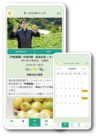 ・アプリ利用料:無料(体験会員の申込・一部のイベント申込・農作物の購入は有料)
