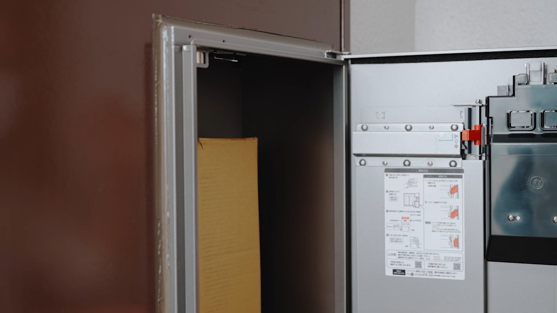 各居住部のそばに必ず設置してあるメーターボックスの扉部分をくりぬき、メーターボックス内部の奥行きを活用することで宅配ボックスを設置します。