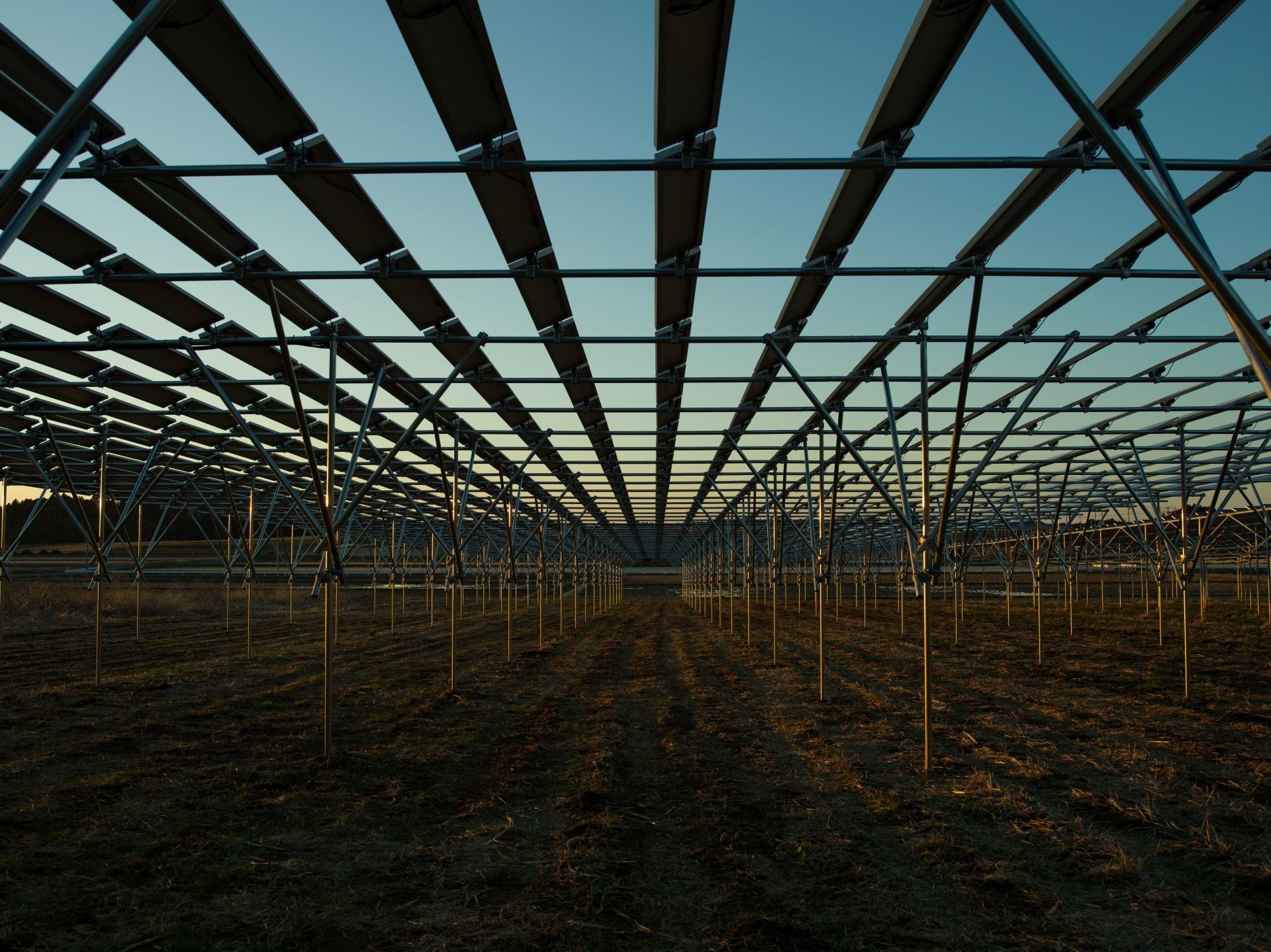 ソーラーシェアリングはパネルの下で農家によるオーガニック栽培が行われ、細長いパネルデザインにより大きな影ができるのを防ぎ、作物に日光が均一に当たるよう配慮されています。