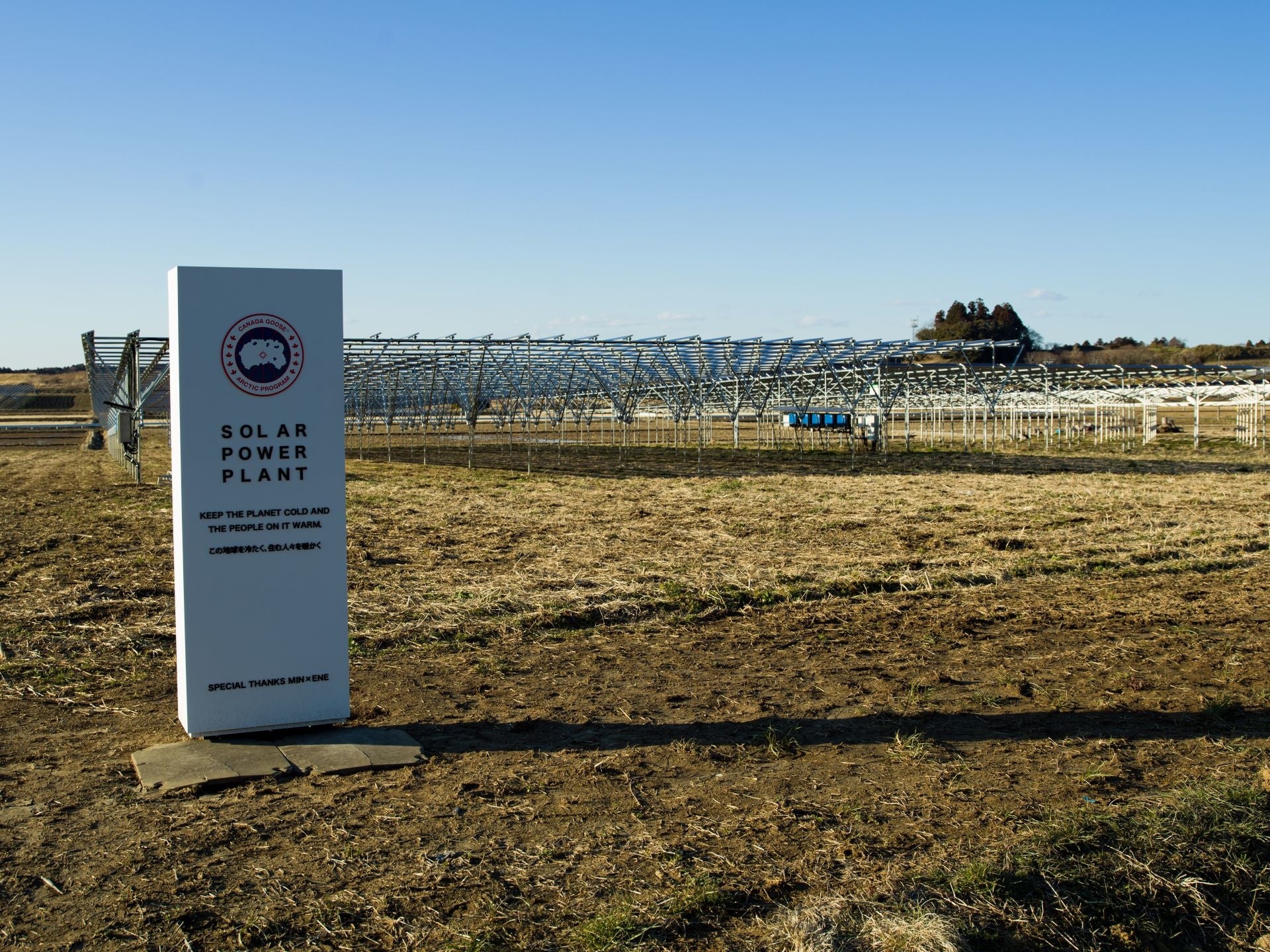 私たちは、再生可能エネルギーへの取り組みを強化するため、市民エネルギーちば株式会社が千葉県匝瑳市で運営する太陽光発電所に出資し、<カナダグース ソーラーパワープラント>を設立。発電所の総面積は1,776m²、発電設備容量は88kWpで、年間発電量は88,200kWhを見込んでいます。これは、カナダグース千駄ヶ谷店の年間消費電力の約60%に相当する量です。
