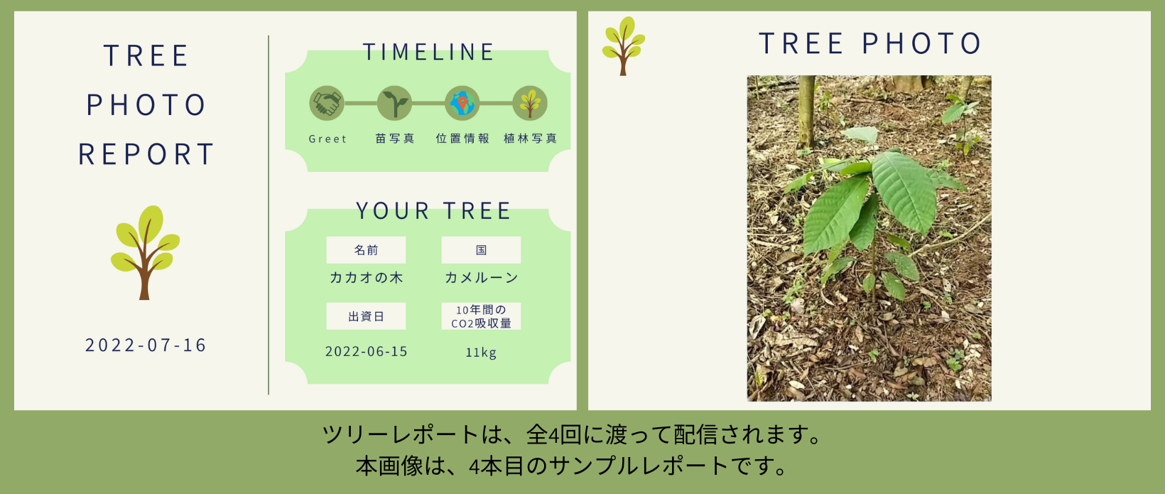 さらに、出資の証明として、植林した木の写真と位置情報を記載したレポートもお送りします。