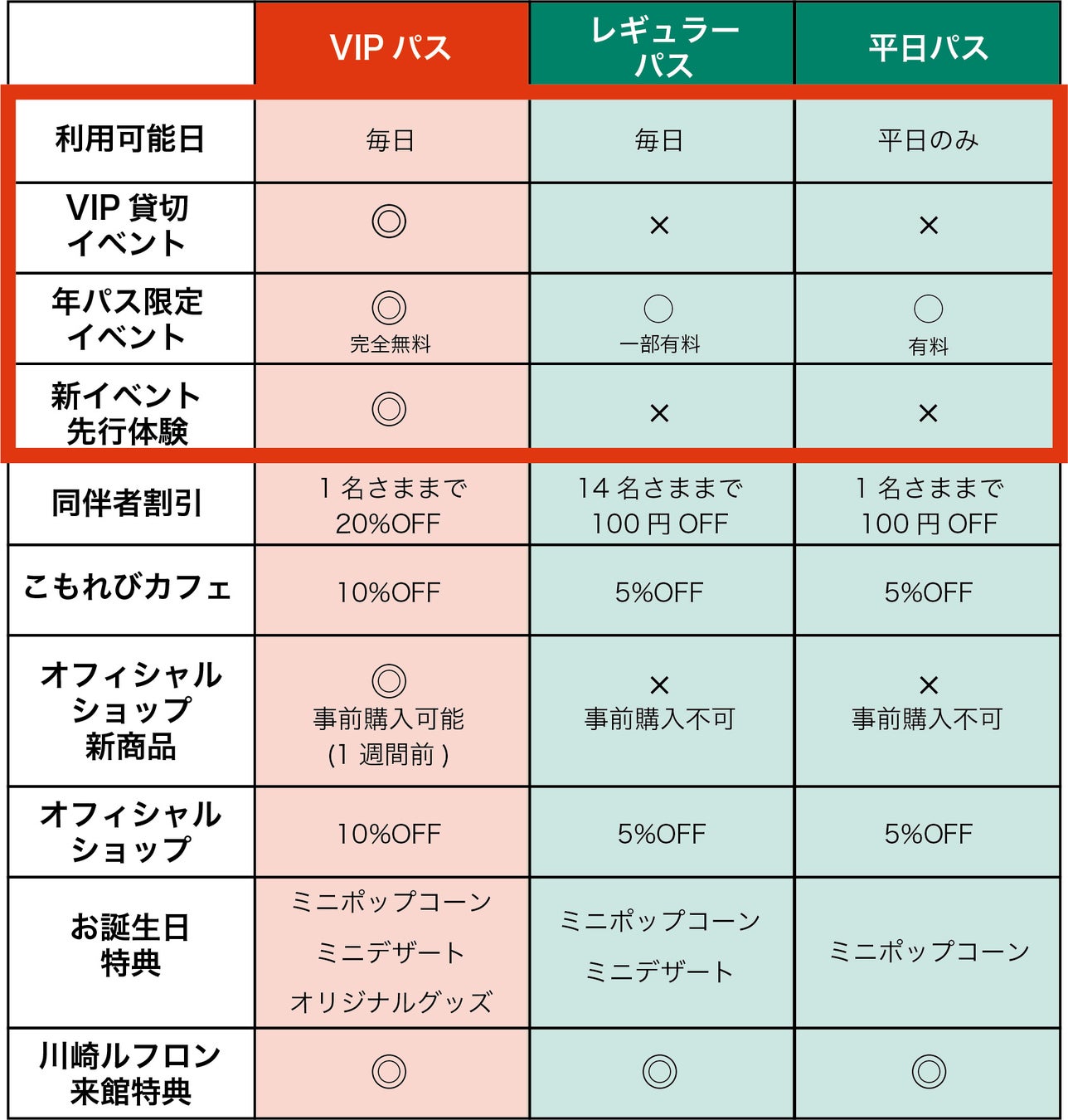 年間パスポートの特典には新たに「オフィシャルショップの新商品の先行販売」、「年パス限定イベント」が加わりました。VIP会員さま限定で年1回「VIP貸切イベント」を開催いたします。詳細は確定次第、公式HPや、SNSにてお知らせいたします。