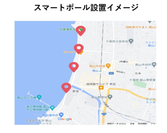 今回、館山市北条海水浴場において、パブリックスペースの地域活性化を見据えた、地域サービスに資する社会インフラとして活用が期待されるスマートポール※1を試行設置し、『広域高速Wi-Fi』環境の整備と、防犯・セキュリティ対策を目的とした『監視カメラ』の設備を整え、それぞれの目的利用の効果検証を行いました。今回の実証実験にて明確となった地域課題を具体的に解決し、自治体が進める持続可能なまちづくりや地域活性化の実現を目指し、“ 地域DX ”化の推進を継続的な取り組みを目指します。