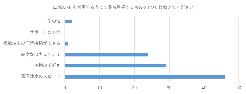 ・『広域高速Wi-Fi』を利用する上で、「通信スピード」、「接続の手軽さ」、「高度なセキュリティ」が求める