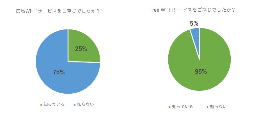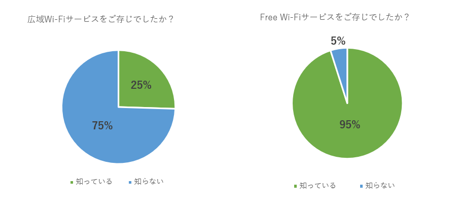 ・『広域高速Wi-Fi』は、認知度が低く、利用経験者も少ない。一方で、Free Wi-Fiは認知度も高く、利用経験者