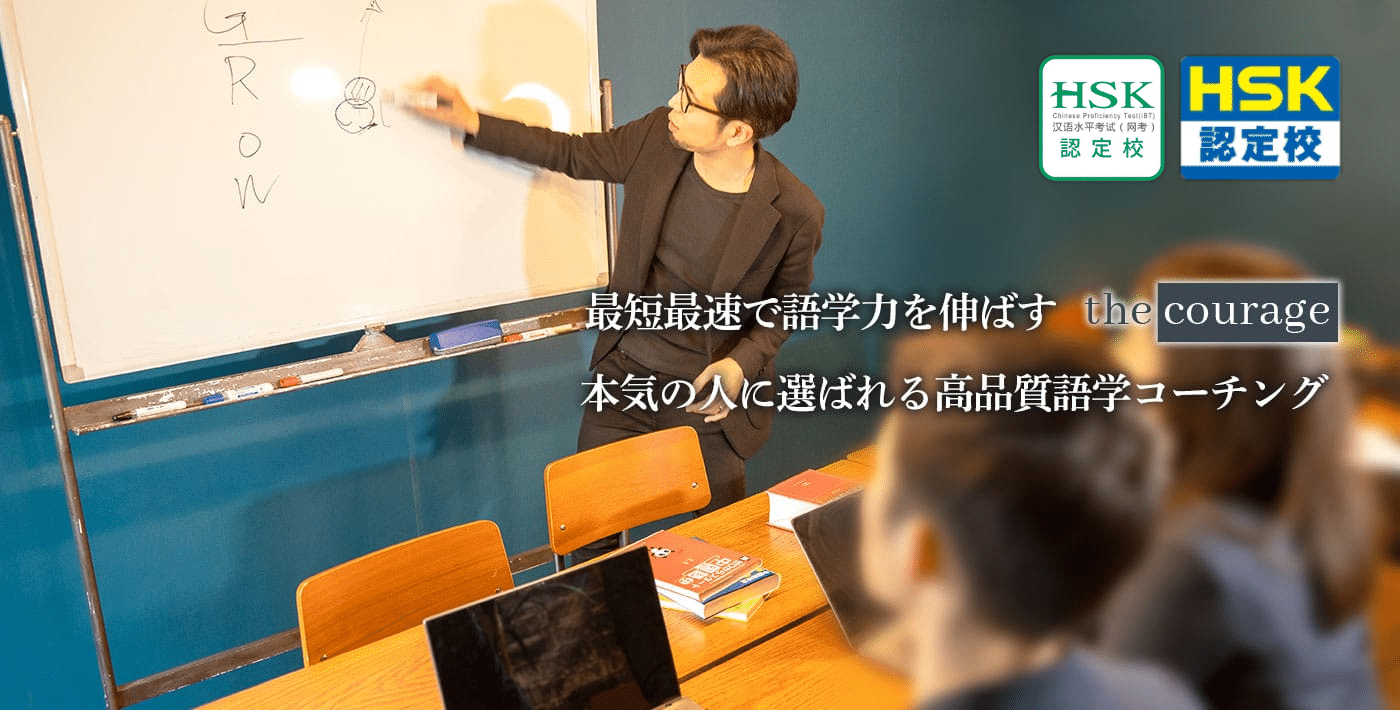 the courage(カレッジ)は中国政府公認の資格試験HSK認定の中国語コーチングスクールです。「効果的な学習方法」「時間確保」「学習の継続」という、語学学習において必要不可欠な3要素全てについて、プロのコーチが1人ひとりに寄り添って徹底的にサポートすることで、圧倒的な中国語力の伸びを実現し続けています。