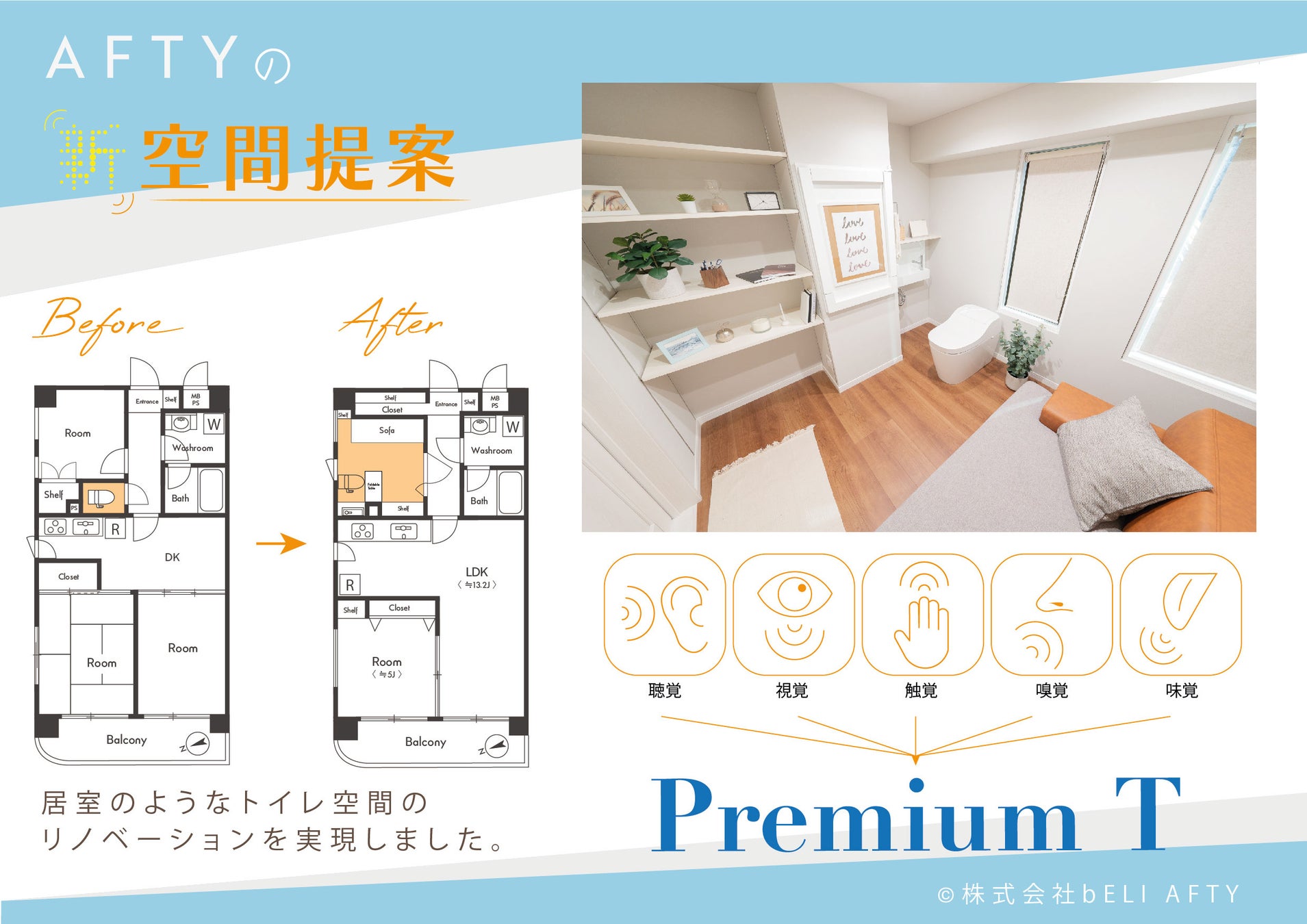 AFTY(株式会社bELI/代表取締役:田平生樹)は、2023年2月3日(金曜日)より、リビングのように過ごせるレストルーム「Premium T」をリリース致します。主にクローン病などの病気を抱えている方々に対して個人宅用として提供する予定です。また、リリースに当たり、個人のお客様に対して、無償で「Premium T」の施工を行うキャンペーンを実施させていただきます。