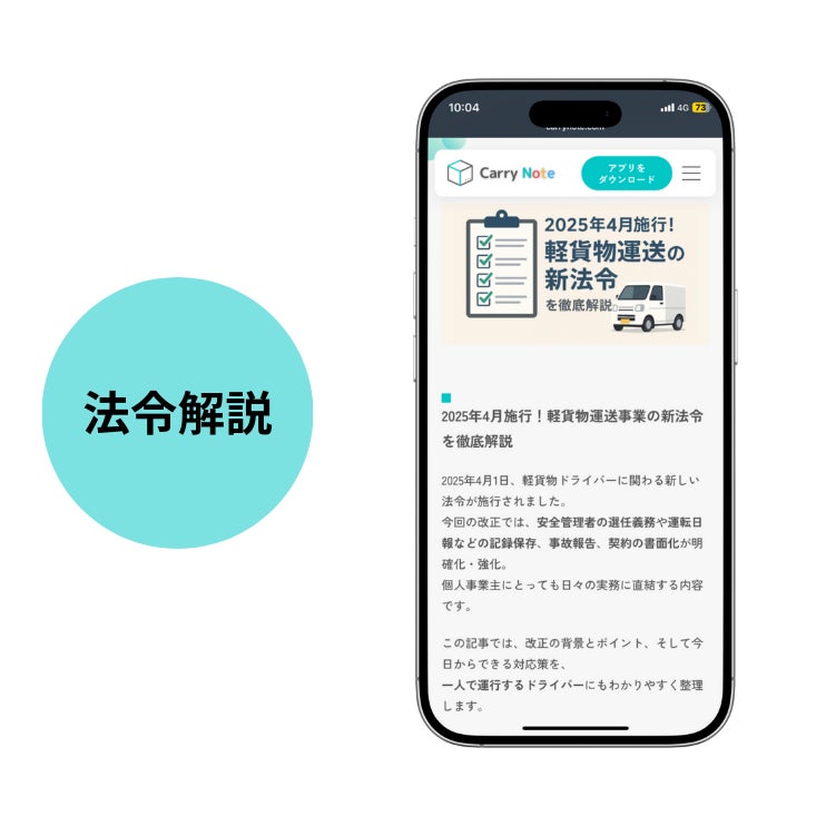 コンテンツ:法令解説、ドライバーインタビュー、実務ノウハウ等