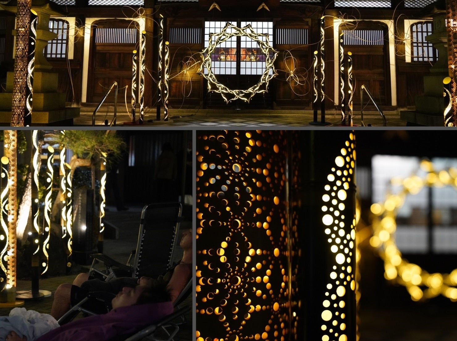 「竹あかり」という新しい日本の工芸アートを見ながらの外気浴。