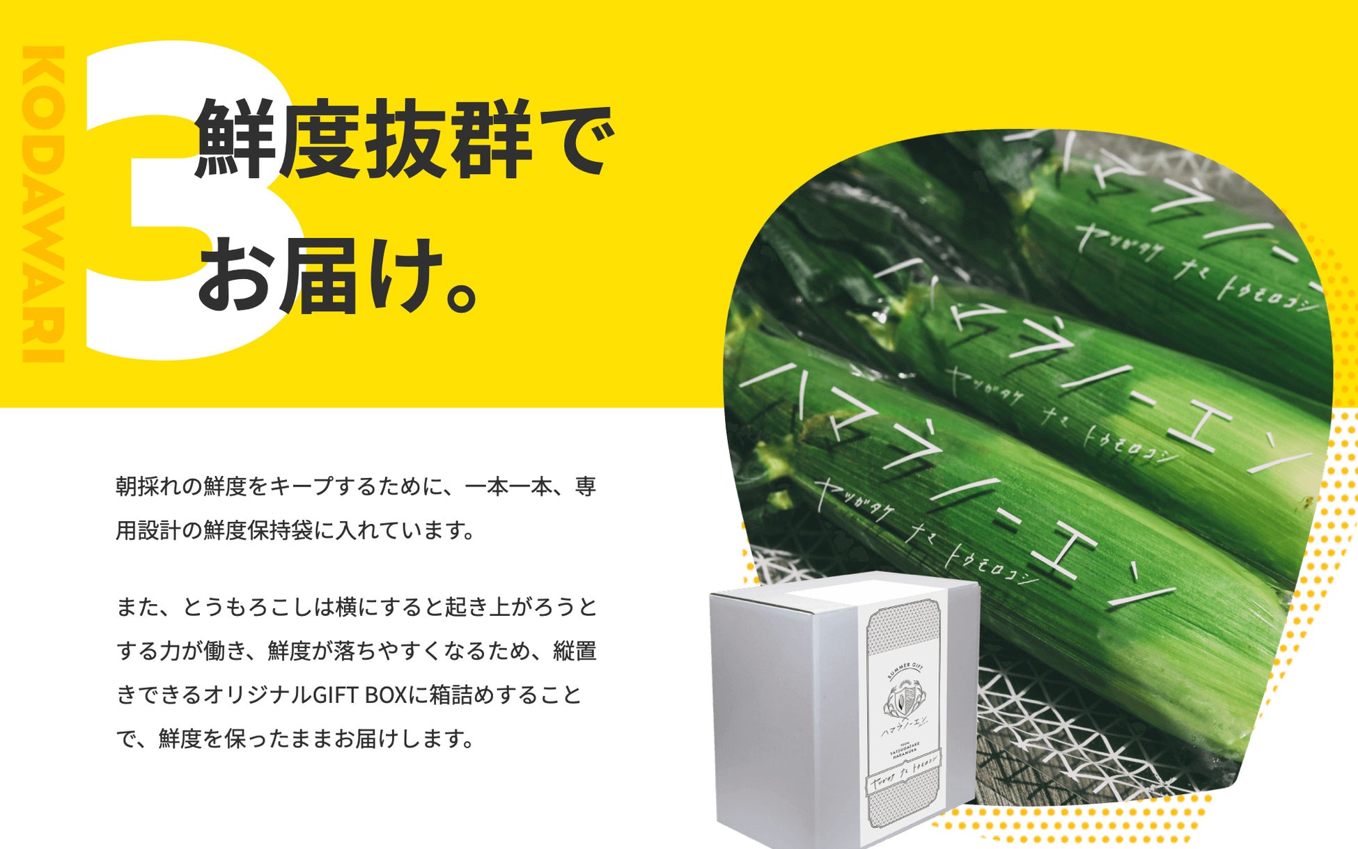 ”日本一うまいとうもろこしを作りたい”とたちあがった若者農家が 大切に育てたとうもろこしです。