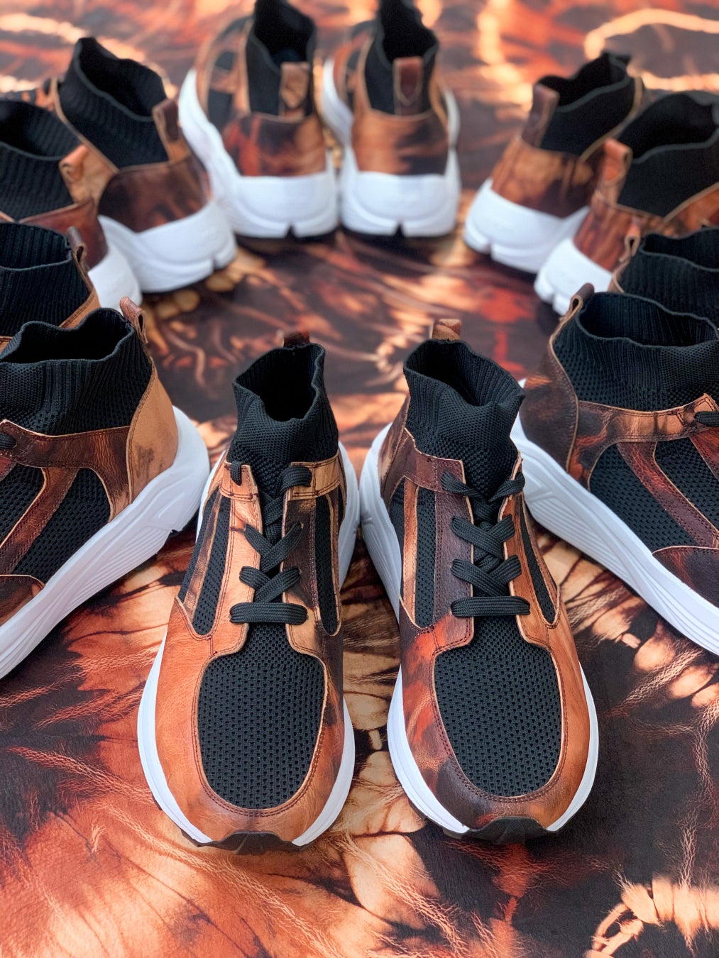 奄美大島伝統の「泥染」を施したレザースニーカーがウェブ販売開始
