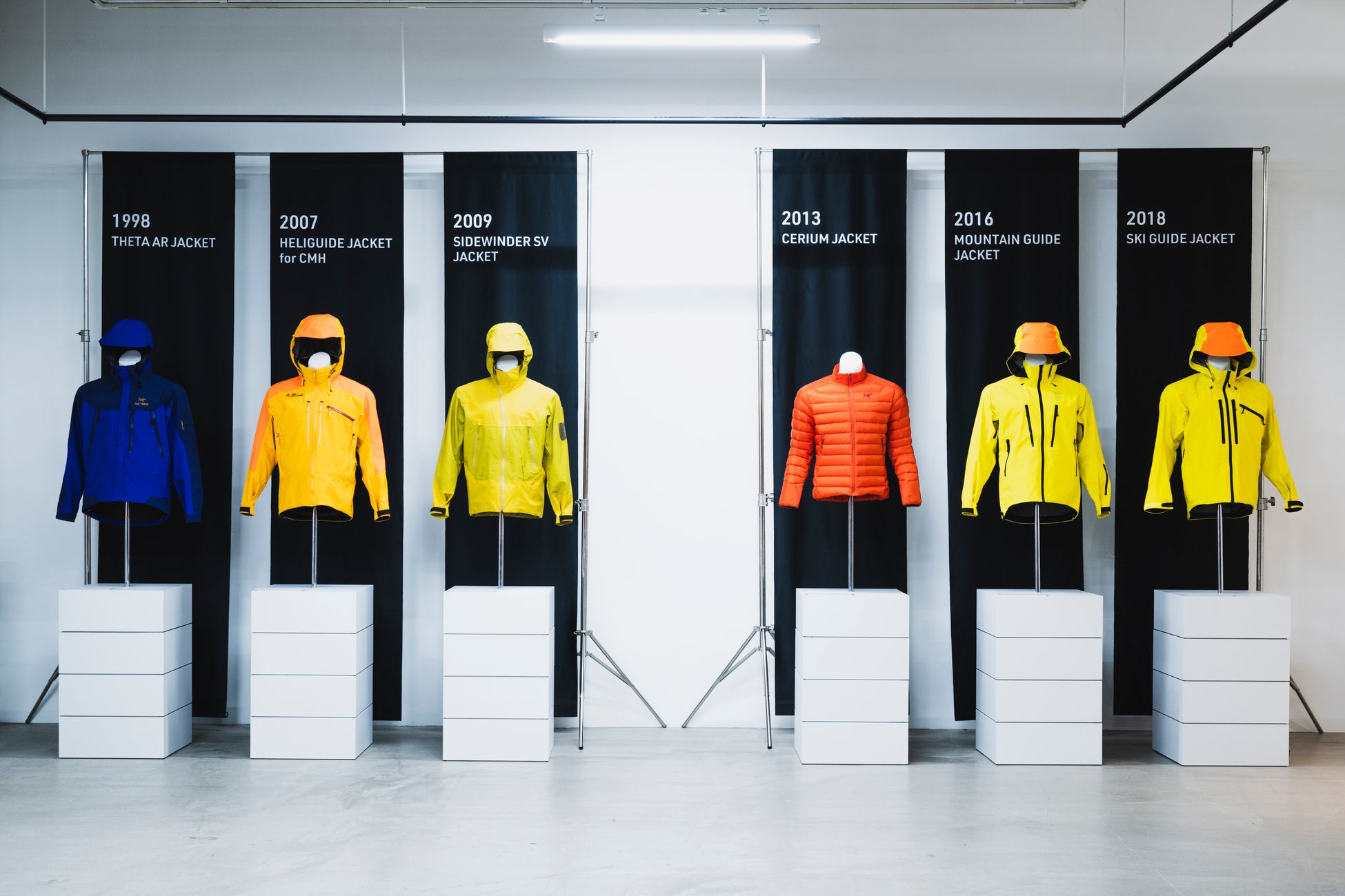 発売されてから25年、いくつもの進化を遂げてきた「アルファ SV ジャケット」の更なる進化を機に開催される今回の展示会では、「アルファ SV ジャケット」の進化の過程を語る上では欠かせない1998年に初めて生産されたアークテリクスのハードシェルをはじめとしたアーカイブの一部となる40点を展示。一般公開に先立って行われたレセプションには、関係者やメディアが参加。担当者からそれぞれの商品にまつわるストーリーを聞きながら流行に左右されない美しいデザインやそれを実現するクラフトマンシップの力、ブランドの哲学を体験。