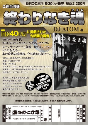 DJ ATOM著 最新刊「終わりなき魂(ソウル)」1970~80年代TOKYOディスコシーンを彩ったアウトロー、サーファー、女優、モデル、ハマトラの女たち─あの時代の喧噪は、今も終わらない…。