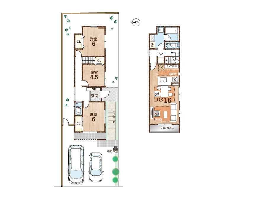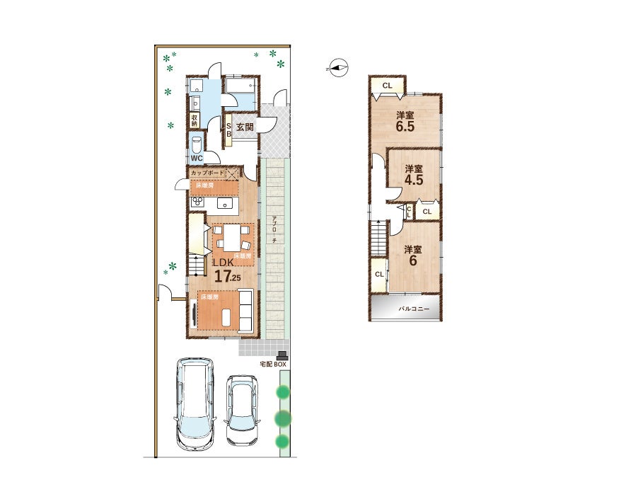 | 2号地 | 140.44㎡(42.48坪) | 85.05㎡(25.73坪) | 6,480万円 | 未着工 |