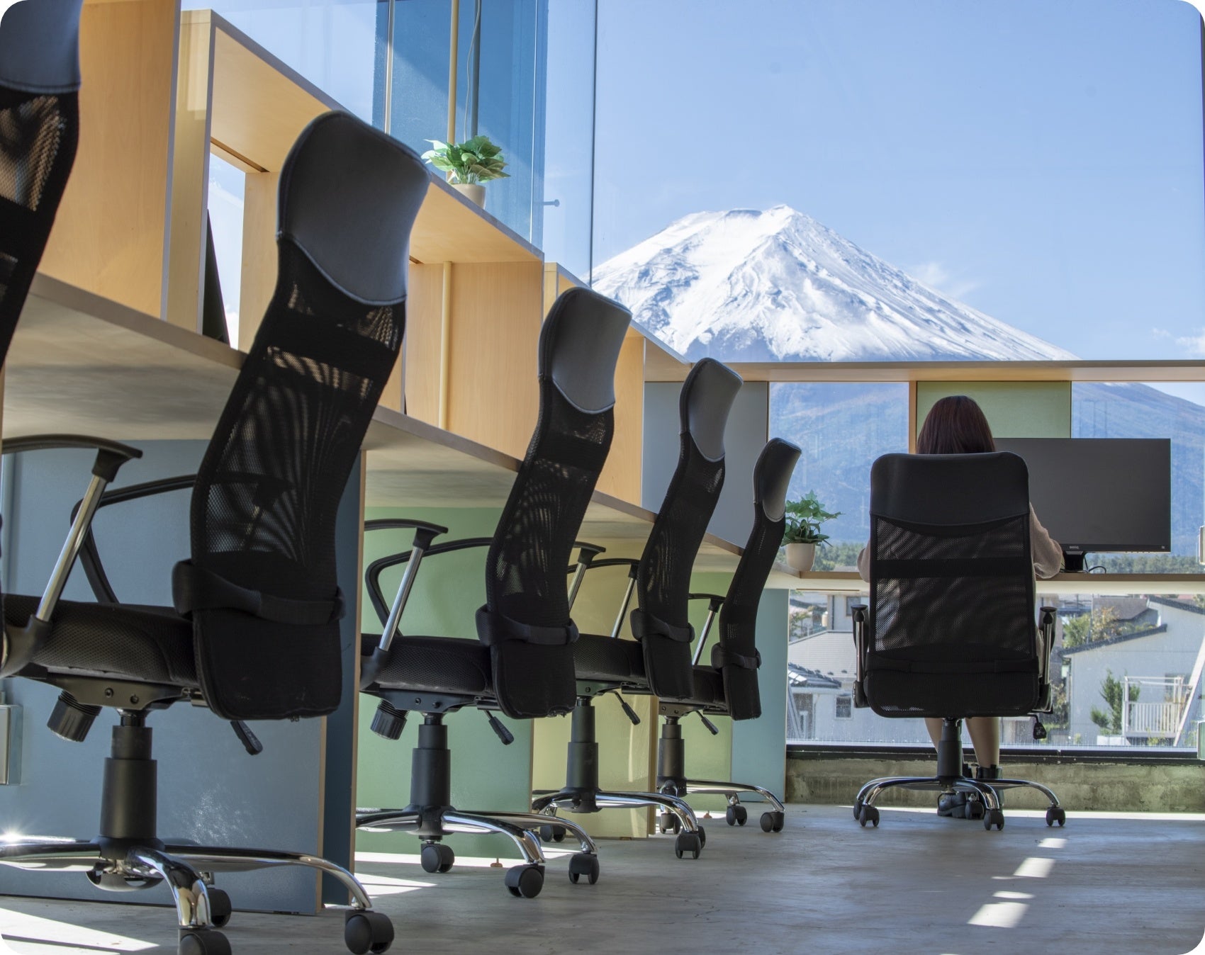 生産性を維持・もしくは上げるために基幹業務に関わるクラウドツールの提供をし、多様な働き方を推進するために山梨県富士吉田市にサテライトオフィスを設け、地方創生テレワークを社内に留まらず社外の方も利用できる仕組みを構築しています。