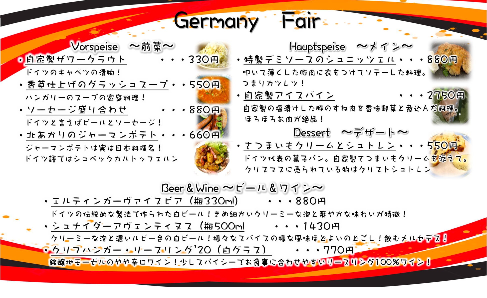 2022年11月の月替わりイベントは『ドイツ料理フェア』を開催いたします。