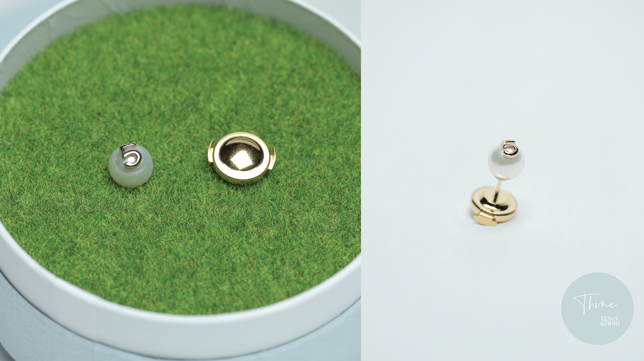 Thineはその道40年以上の経験をもつジュエリー職人が、手作業で数字をひとつひとつパールの形に沿うようにして磨くことで、引っ掛かりを低減。18金の輝きはもちろんのこと、数字やアルファベットなどアレンジを加えた商品をつくることができます。