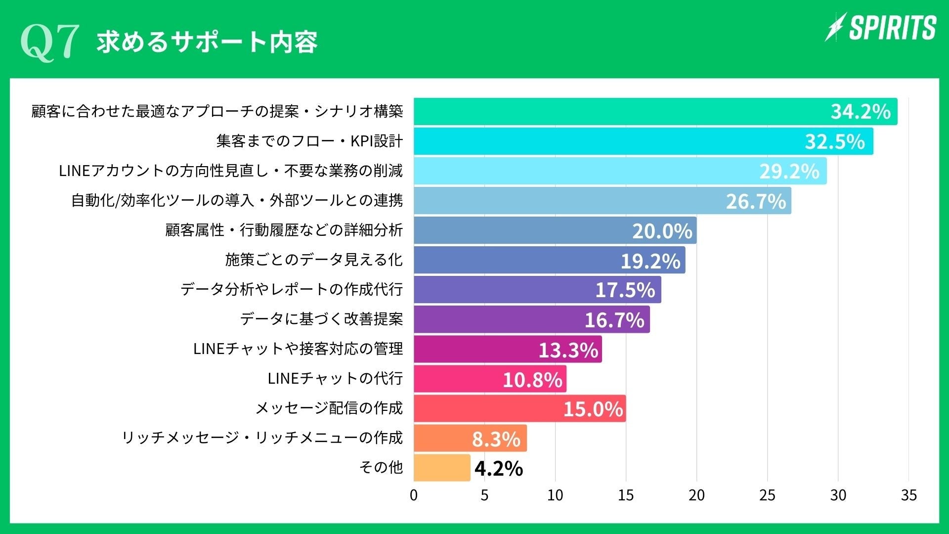 調査結果は、企業が単なるツール提供に留まらず、運用全体の戦略的サポートを強く求めていることを示しています。特に、「顧客に合わせた最適なアプローチの提案・シナリオ構築」と「集客フローやKPI設計」といった支援は、効果的なLINE運用の基盤となると期待されています。企業は、各機能を単独で導入するのではなく、全体の運用改善を見据えたトータルサポート体制の構築が必要です。