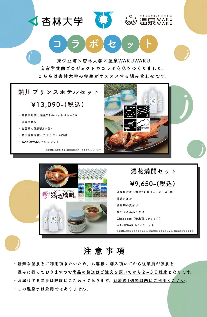 株式会社パルクム(東京都千代田区/代表取締役:井上 泰衡)は、東伊豆町、杏林大学温泉観光学ゼミ、Creative Liberation Company GEKIとの産官学連携プロジェクトで開発した、熱川温泉旅行体験ギフトの販売を10月28日(金)よりECサイト『温泉WAKUWAKU』及び『熱川プリンスホテル』、『湯花満開』で開始いたします。
