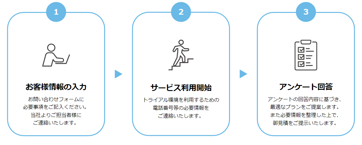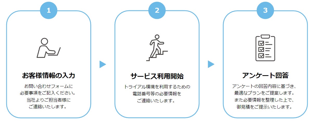 【「unirobot cloud AI電話サービス」無料トライアル申込の流れのイメージ】